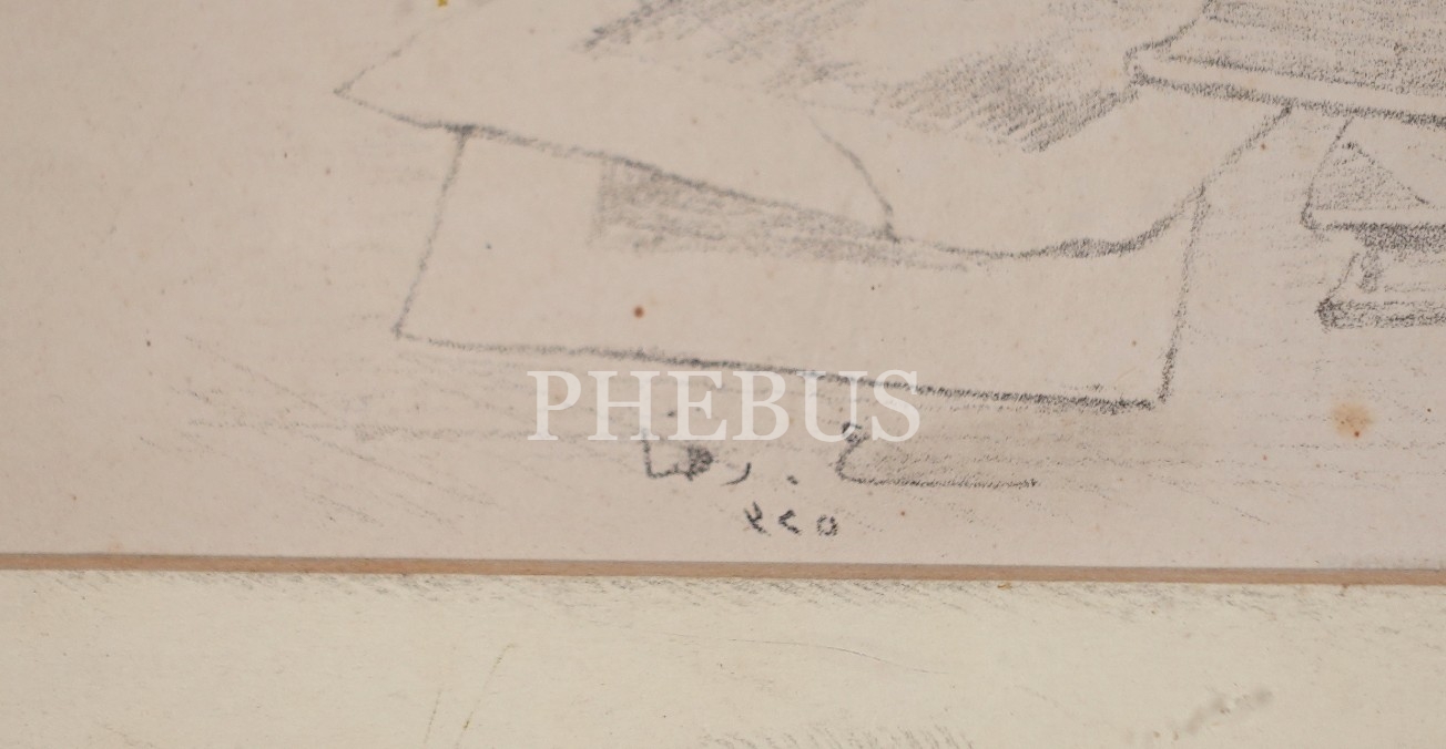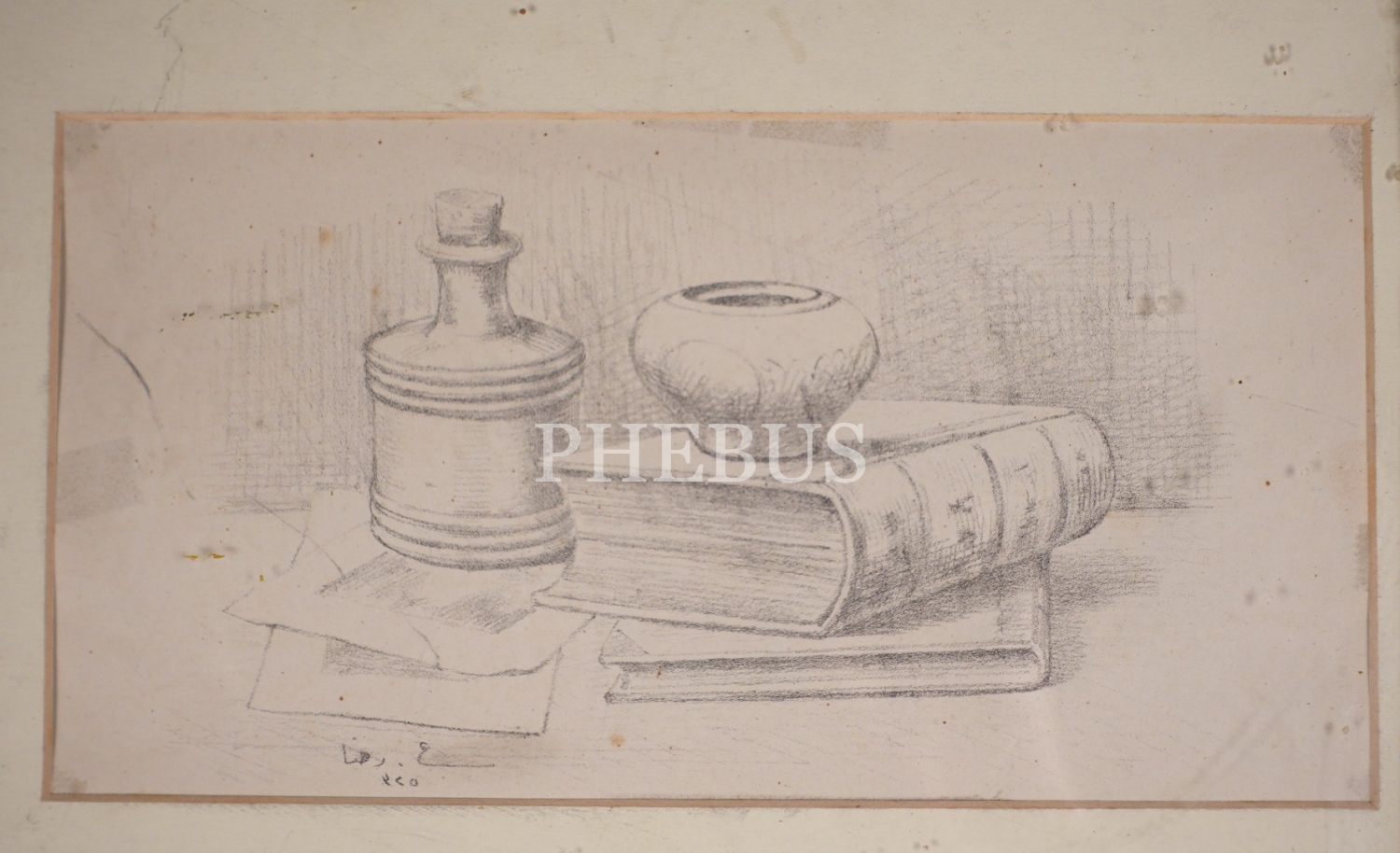 Osmanlıca A. Rıza [Ali Rıza] imzalı ve 1325 tarihli [baskı] karakalem çalışması, çerçeveli, 33x43 cm