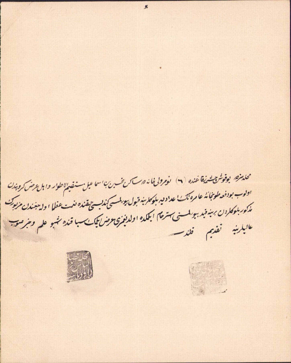 Osmanlı İsmail adlı kişinin Tophane-i Amire bölüklerinden birine kaydının yapılmasına dair rica mektubu, 18x23cm