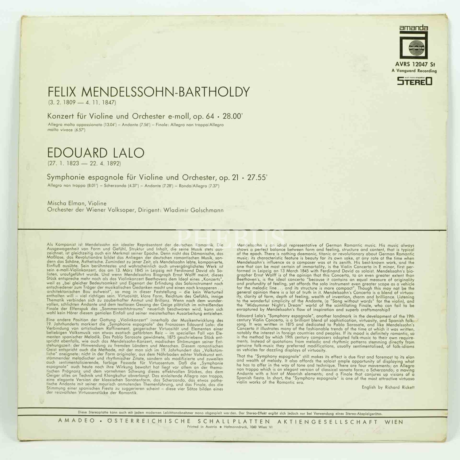 FELIX MENDELSSOHN / BARTHOLDY - Violinkonzert e-moll,op.64 EDOUARD LALO Symphonie Espagnole,op.21