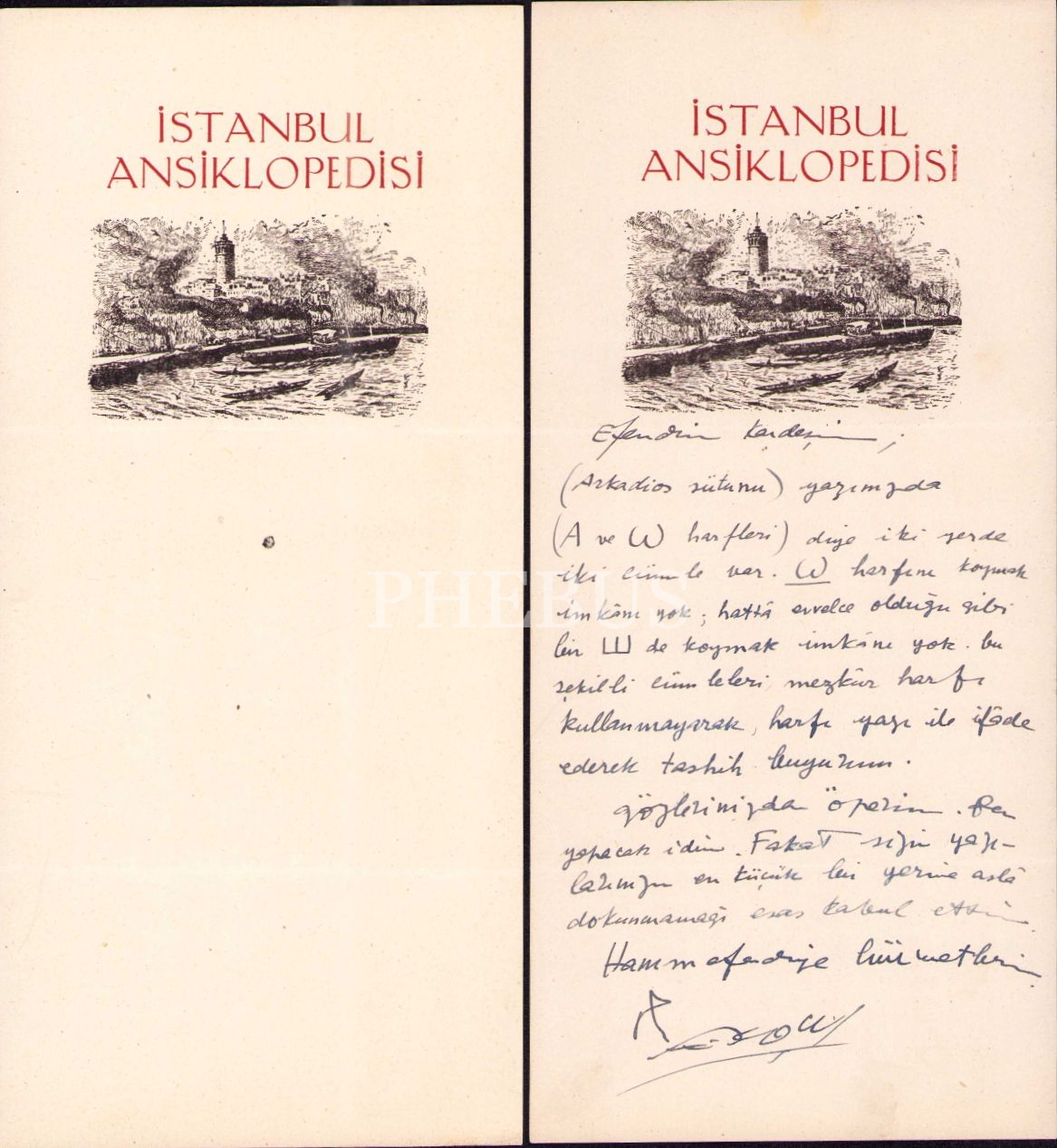 REŞAT EKREM KOÇU'DAN SEMAVİ EYİCE'YE, İSTANBUL ANSİKLOPEDİSİ İLE İLGİLİ MEKTUP, 12 x 27 cm, 2 sayfa…