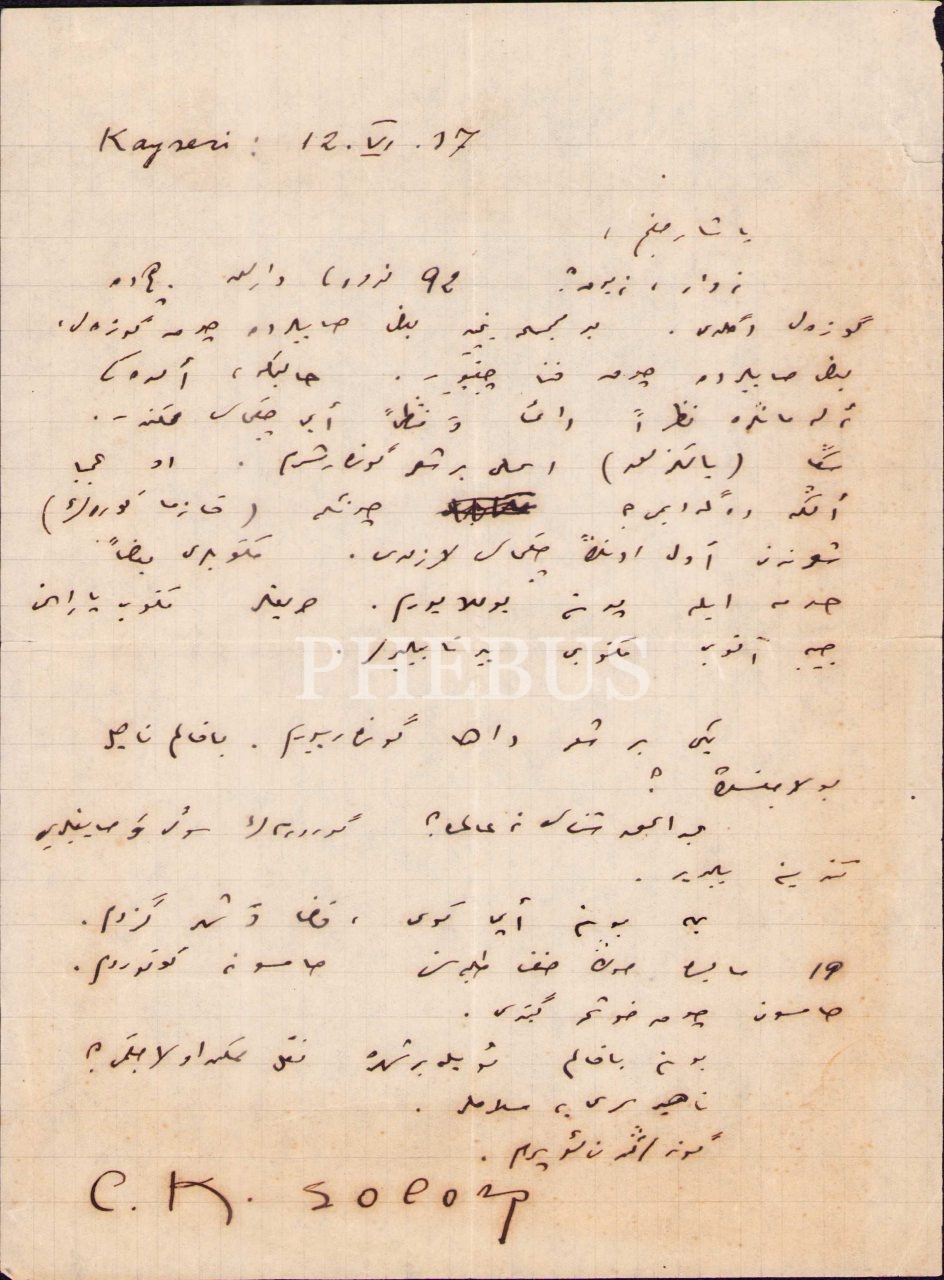 CEVDET KUDRET SOLOK'TAN YAŞAR NABİ NAYIR'A 6 HAZİRAN 1937 TARİHLİ, MEKTUP, 18 X 25 cm...