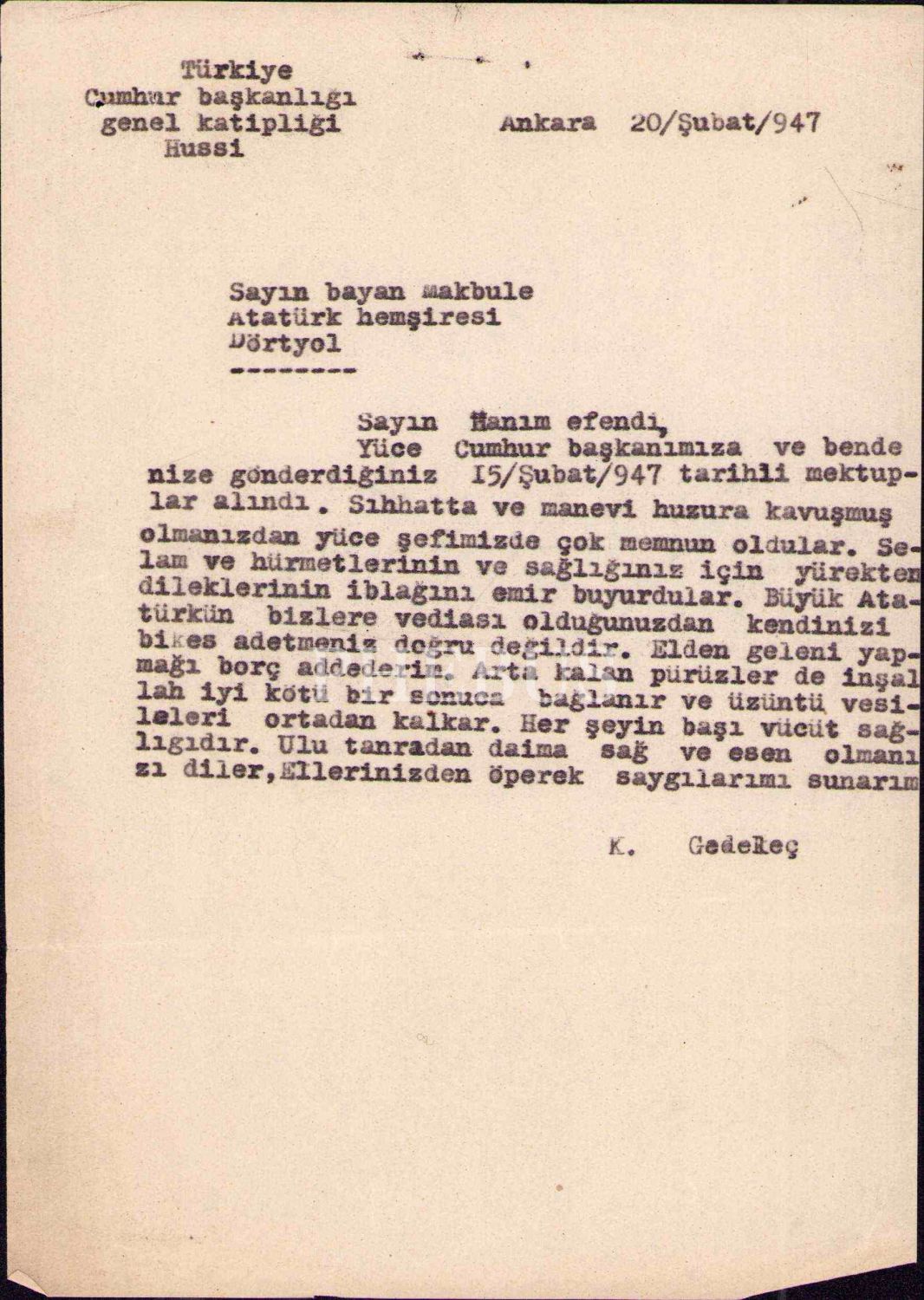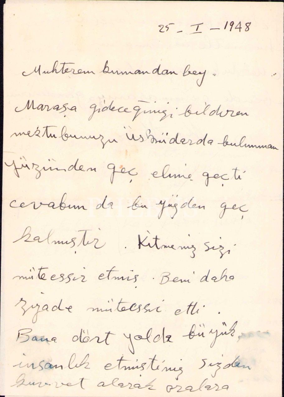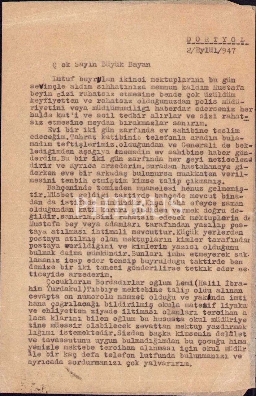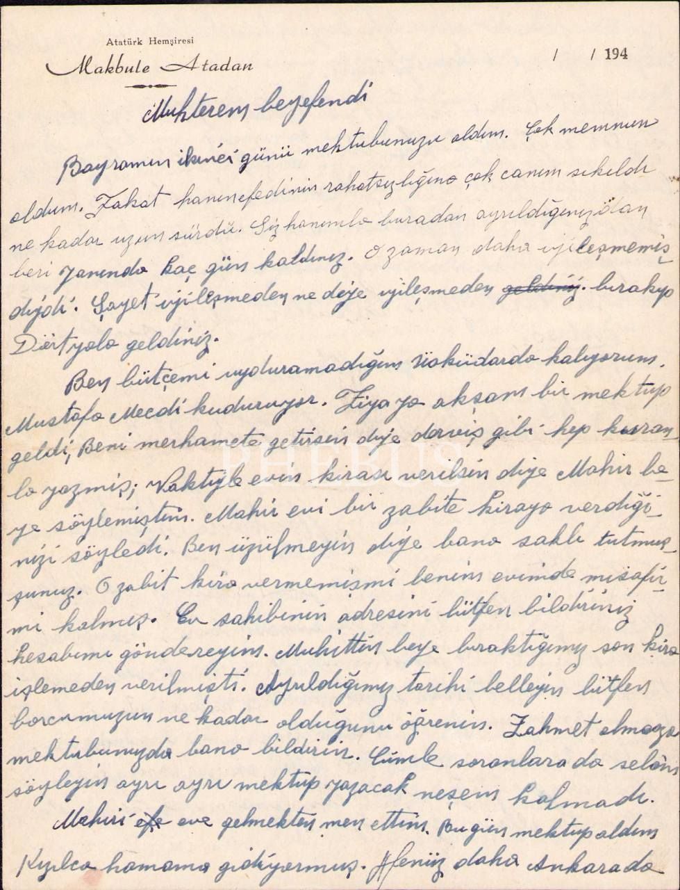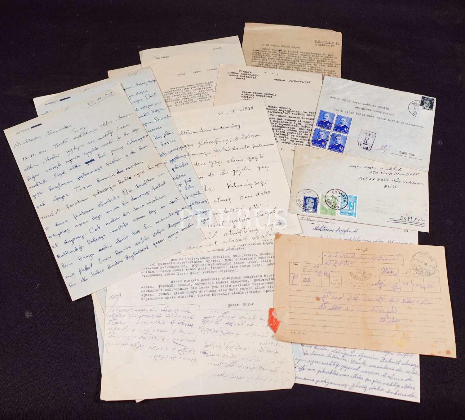 Atatürk'ün hemşiresi Makbule Atadan'a, Gazi Mustafa Kemal ve eşi Latife Hanım tarafından gönderilen 1341 tarihli Osmanlıca telgraf vd. mektuplar