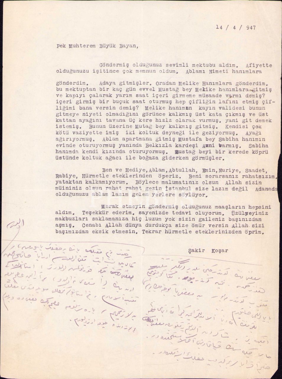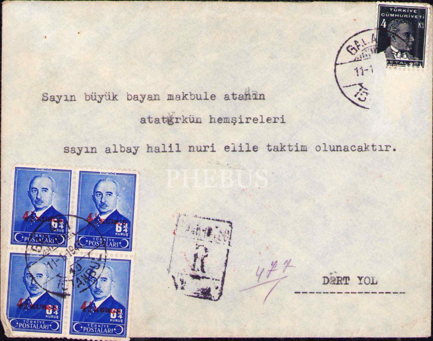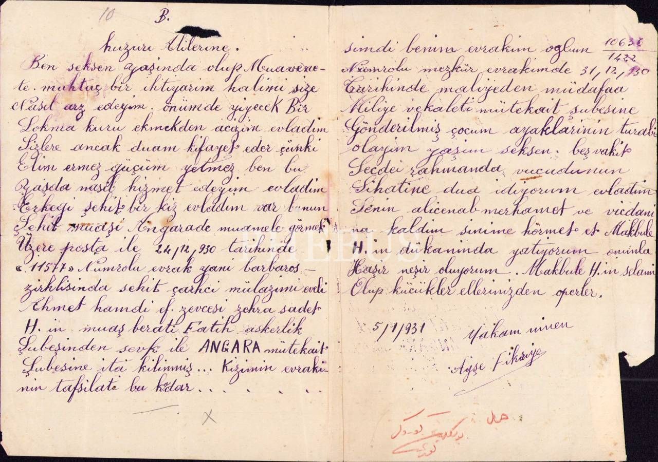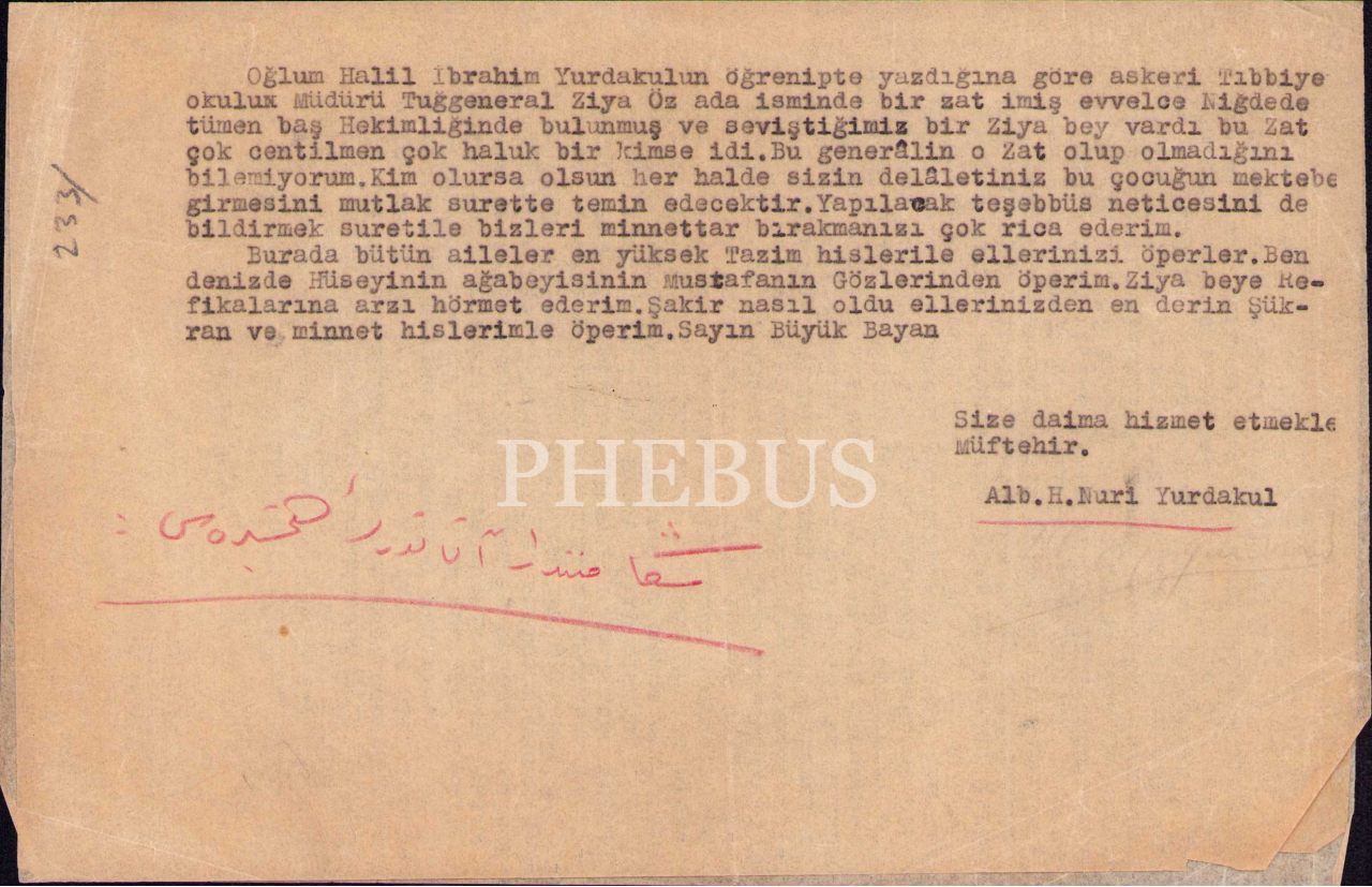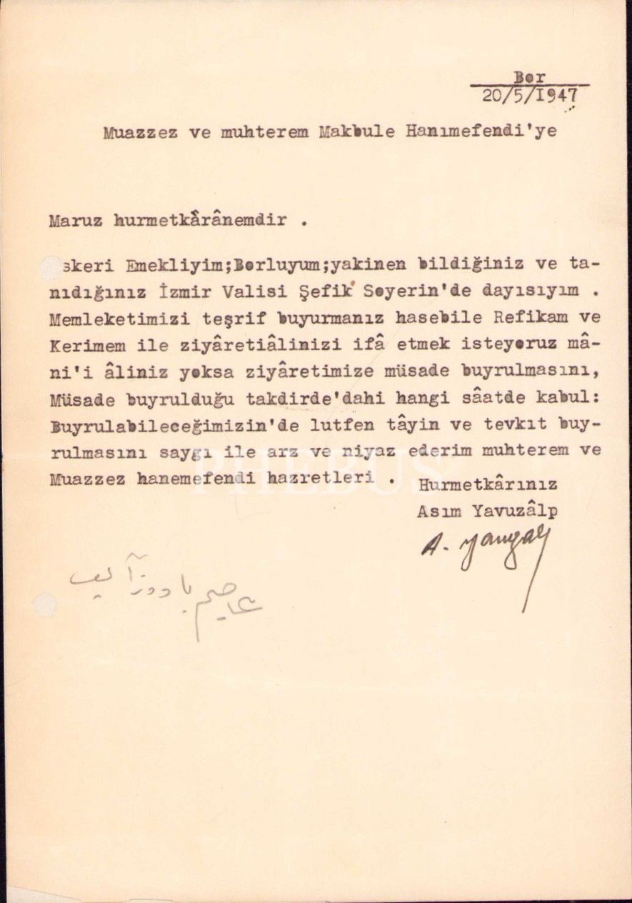 Atatürk'ün hemşiresi Makbule Atadan'a, Gazi Mustafa Kemal ve eşi Latife Hanım tarafından gönderilen 1341 tarihli Osmanlıca telgraf vd. mektuplar