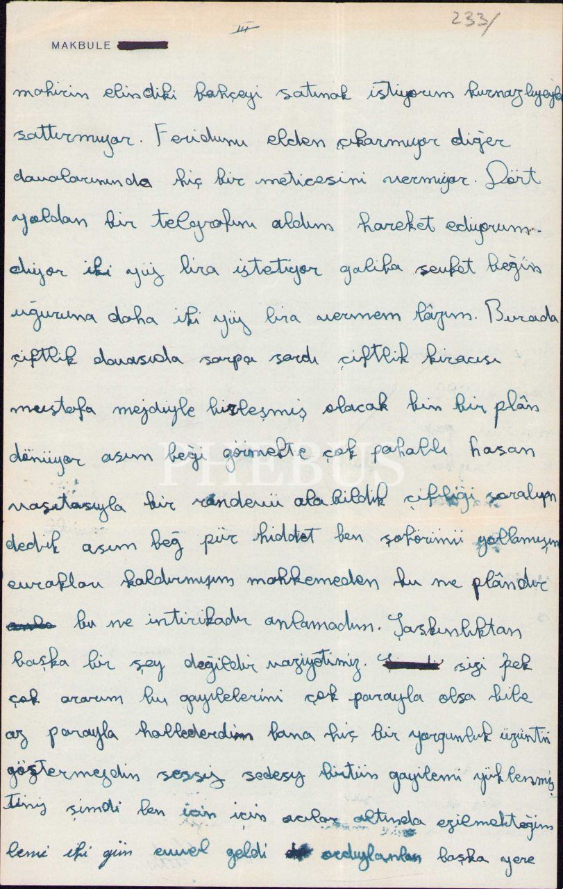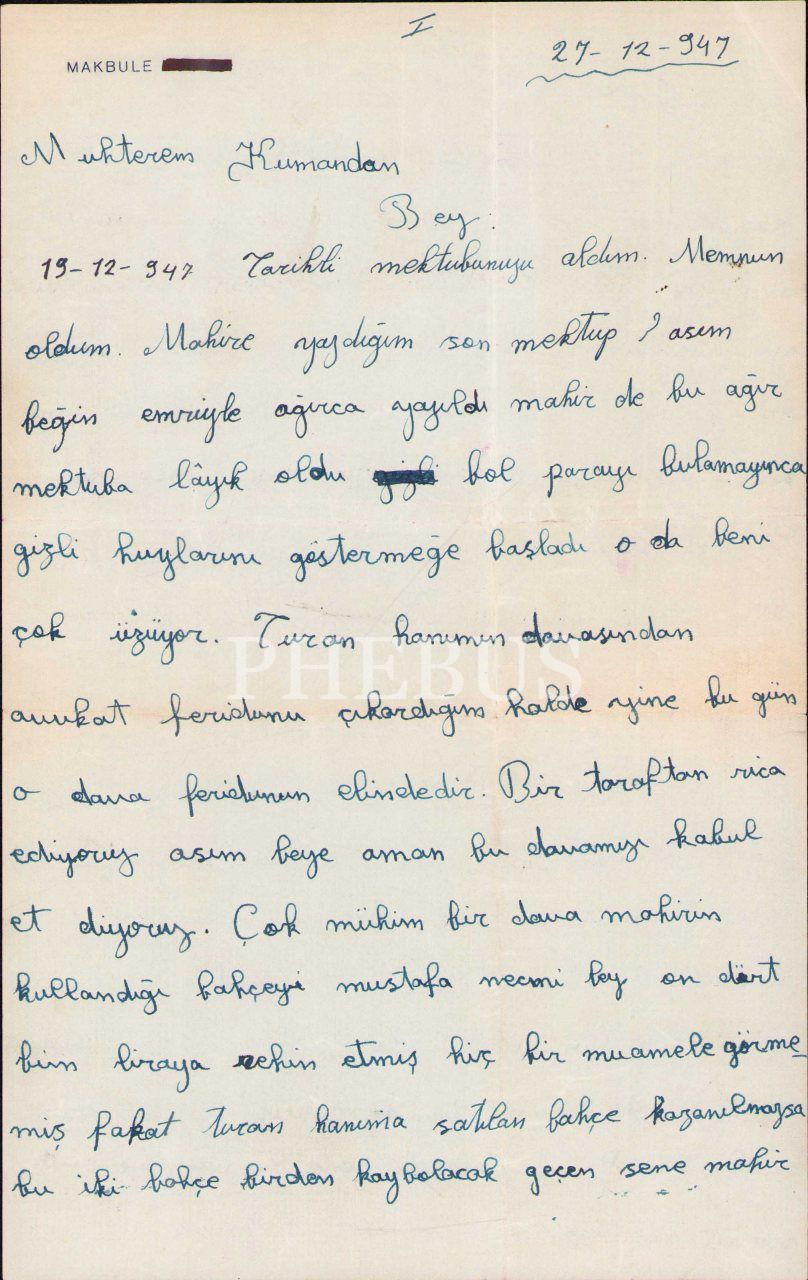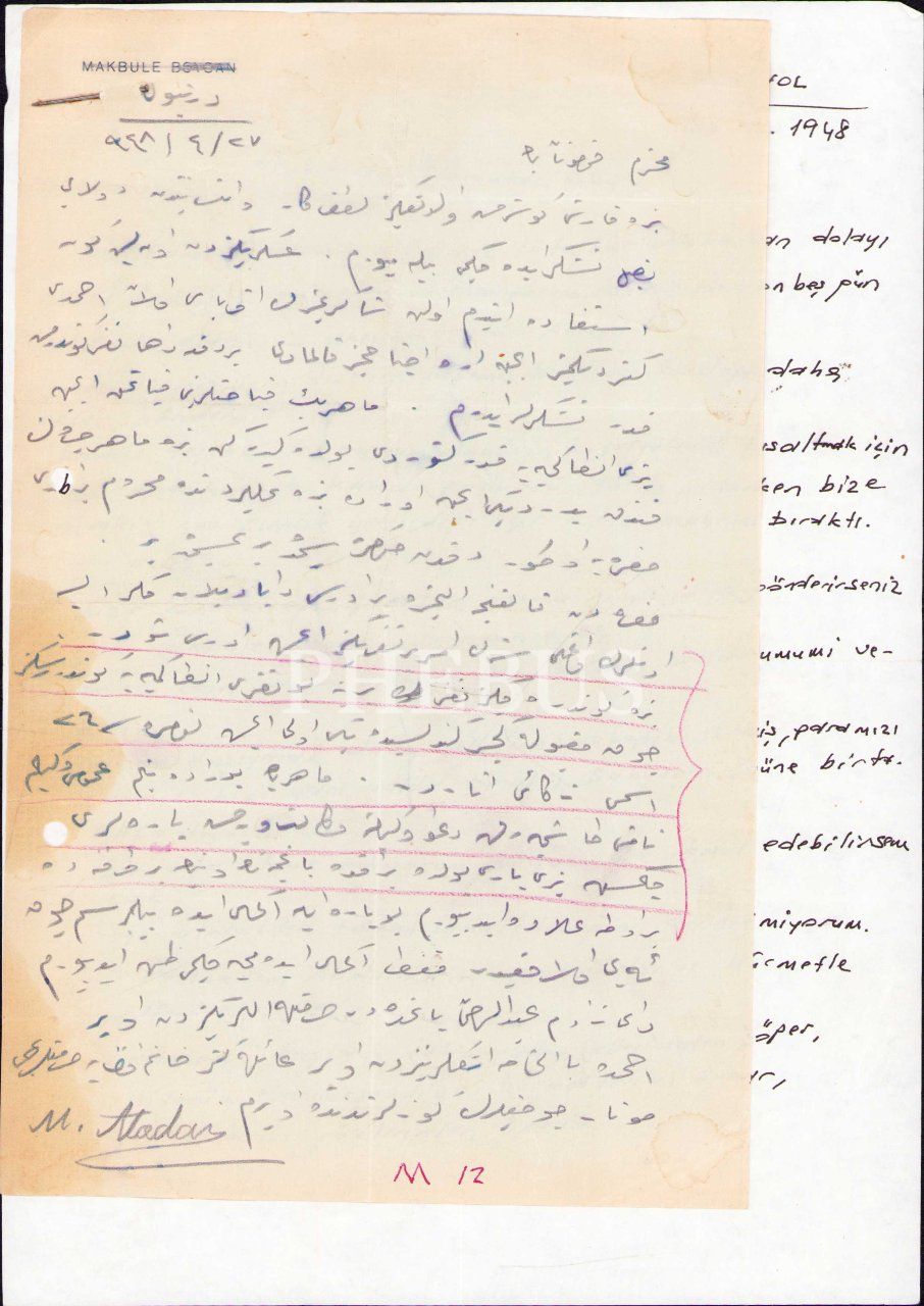 Lot içerisinde Makbule Atadan'a hitaben Başbakan Recep Peker, Milletvekili Albay Halil Nuri Yurdakul vd. tarafından gönderilen şahsi mektuplar ile Makbule Atadan tarafından kaleme alınan mektuplar dahil olmak üzere 1931-57 tarihlerine ait 13 adet mektup ve 2 adet zarf yer almaktadır.