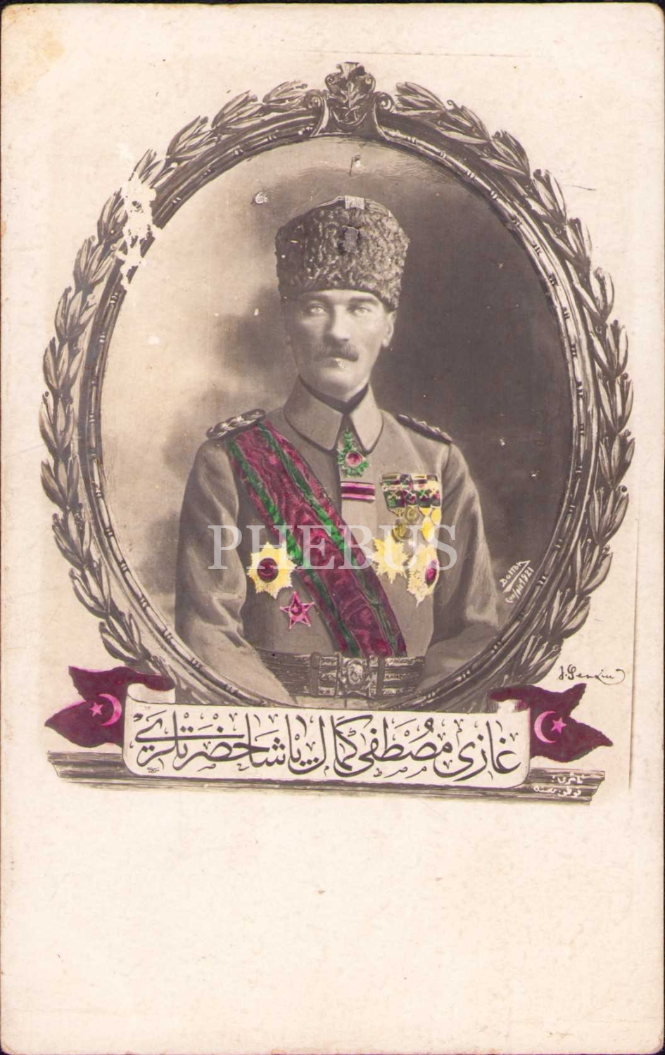 Osmanlıca "Gazi Mustafa Kemal Paşa Hazretleri" yazılı kart arkasında 1923 tarihli şahsi mektup