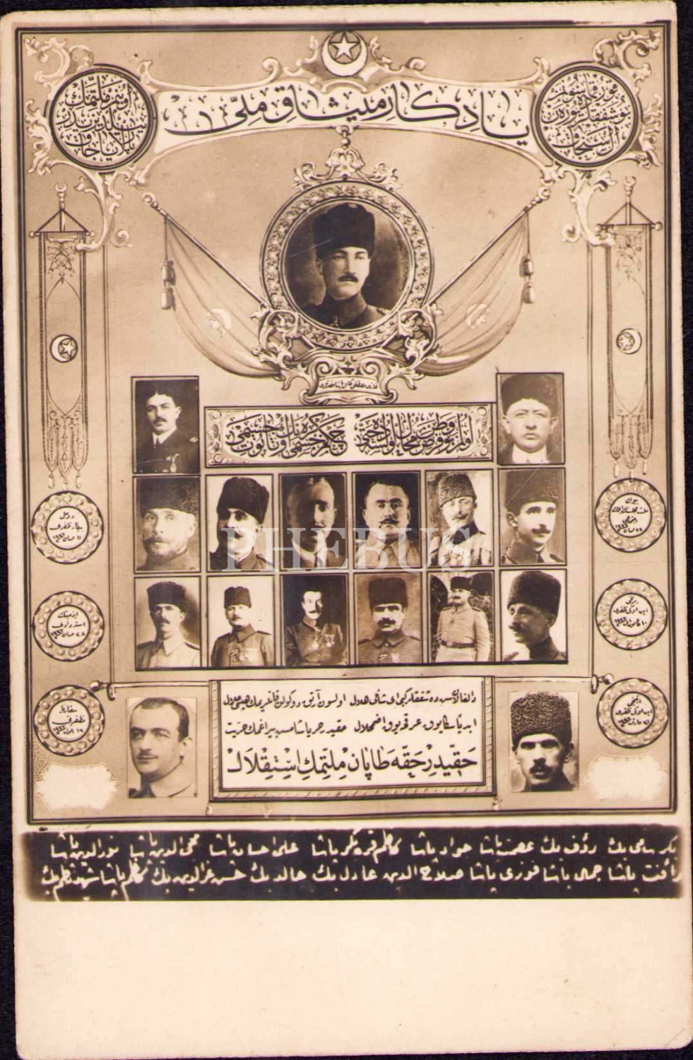 Osmanlıca "Yadigâr-ı Misak-ı Millî" başlığıyla Mustafa Kemal Atatürk ve paşalar