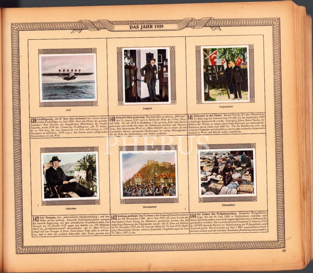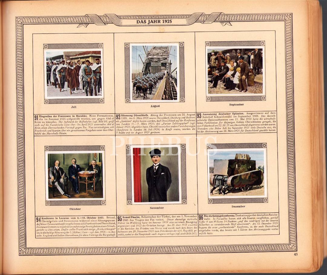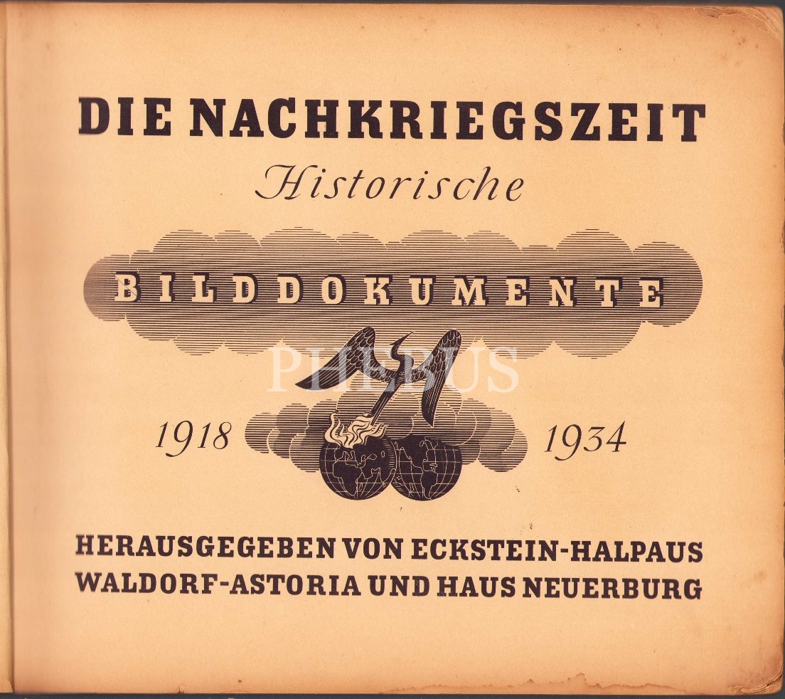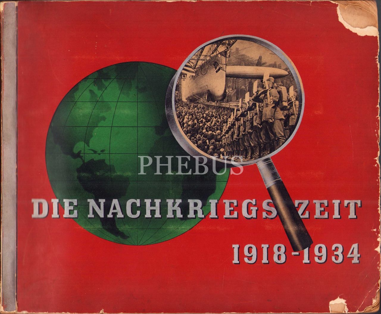 İki adet Atatürk çıkartması da içeren Almanca Die Nachkriegszeit 1918-1934 [Savaş Sonrası Dönem] Albümü, 97 s., 29x35 cm, kapağı yıpranmış haliyle