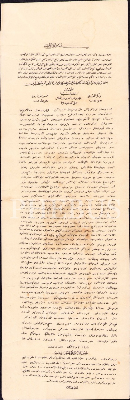 Birinci Cihan Harbi'nde dağıtılan ve Bedir Ashabı'nın isimlerinin yazılı olduğu asker muskası, Askerî Matbaa, 13x42 cm