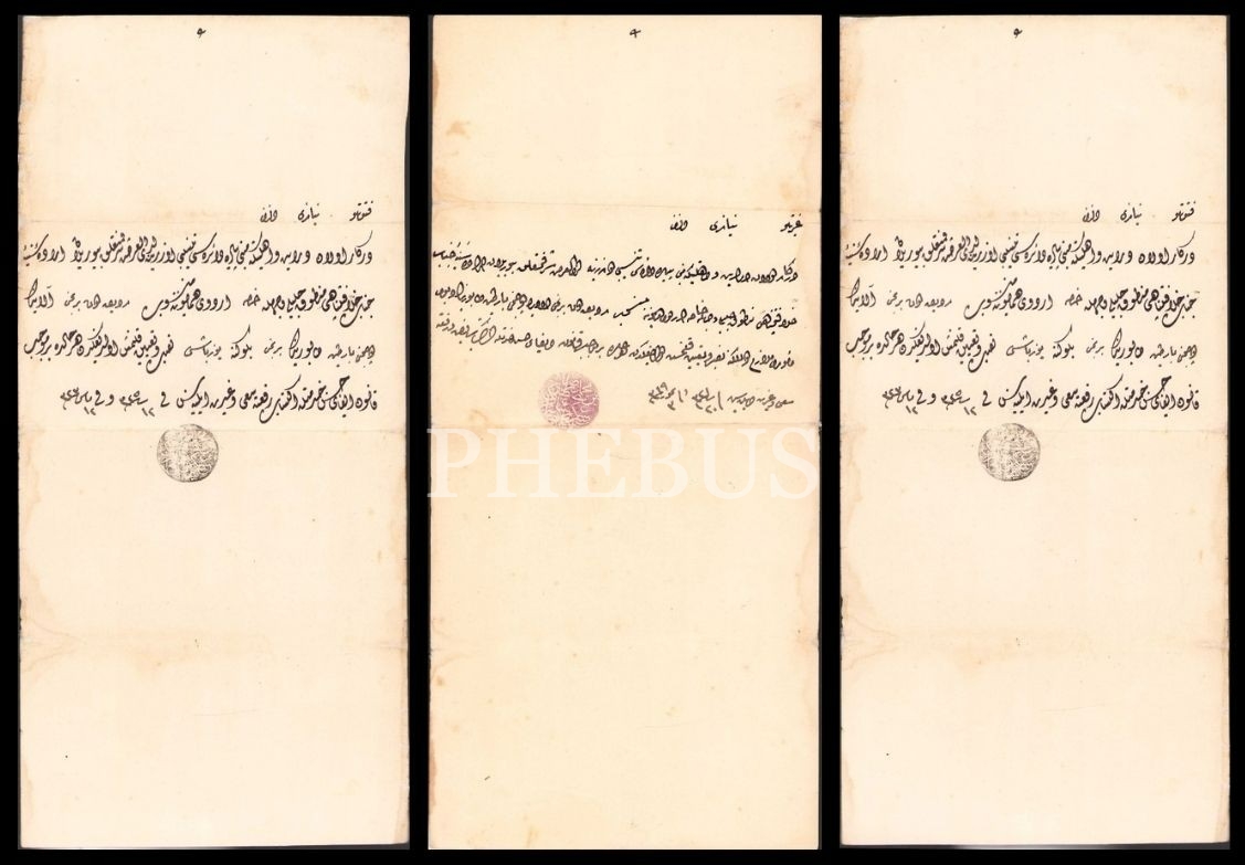 Niyazi Efendi b. Hüseyin Hüsnü Bey'in terfiine dair 3 adet tayin beratı: Bartın Taburu'nda Mülazım-ı Sanilik (1314), Mülazım-ı Evvellik (1321) ve Yüzbaşılık (1325), çeşitli boyutlarda
