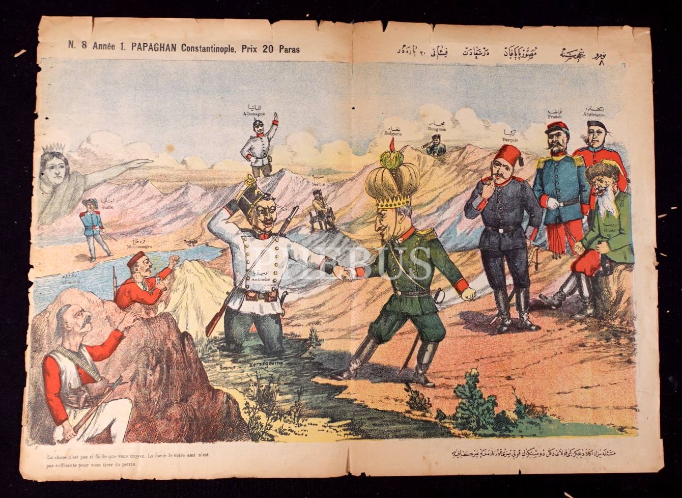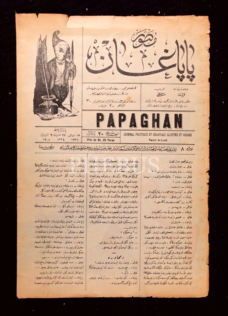 Osmanlıca Musavver Papağan dergisinin 9 Teşrinievvel 1908 tarihli sayısının afişi, 40x54 cm