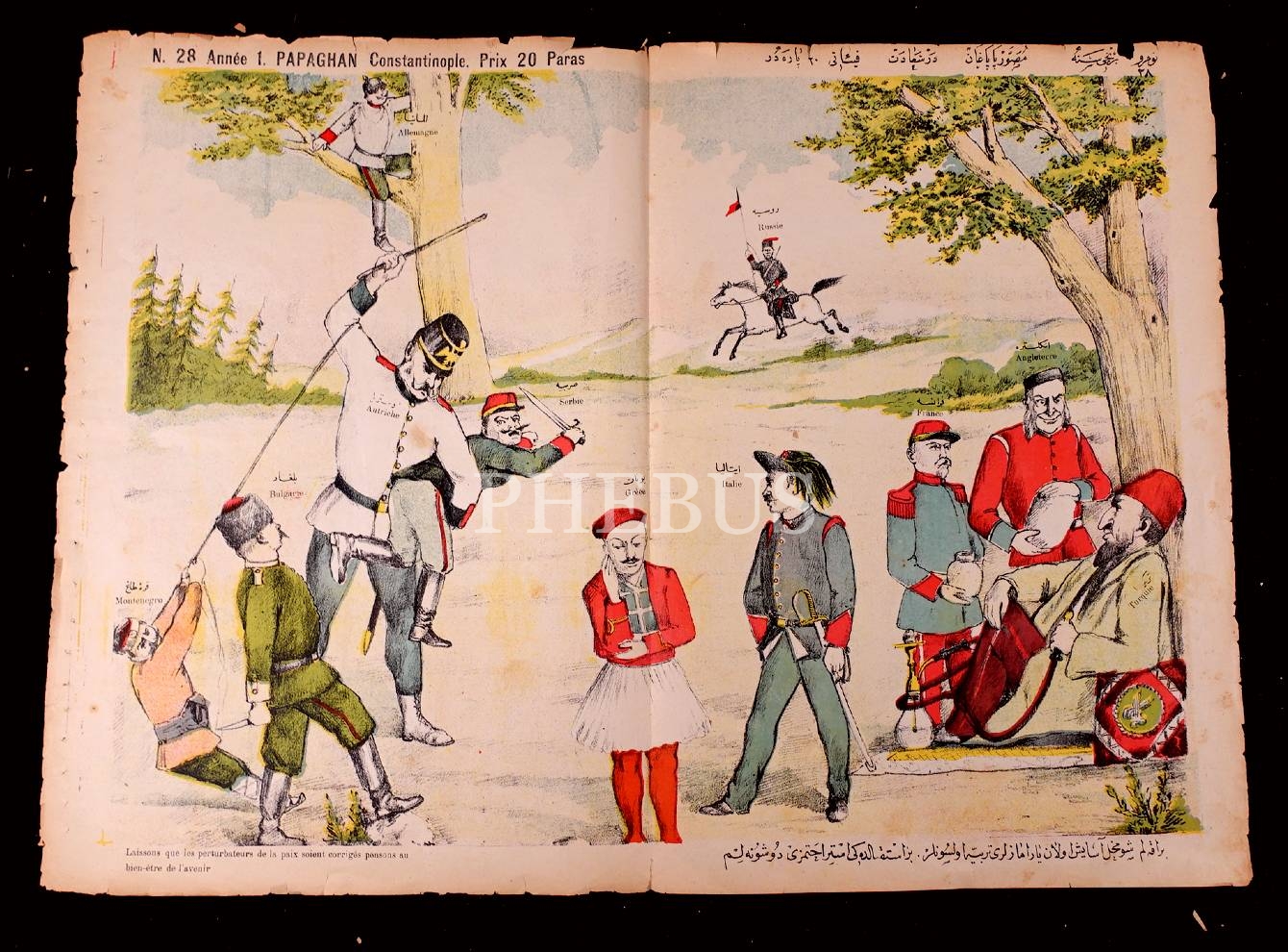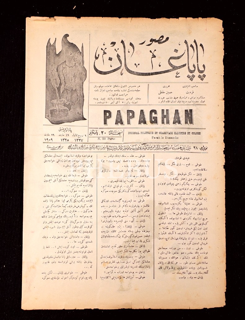Osmanlıca Musavver Papağan dergisinin 29 Mart 1909 tarihli sayısının afişi, 40x56 cm