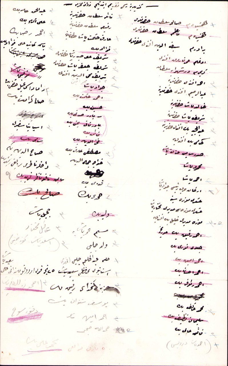 "Kâmi Beyefendi'ye, ... Sabık İzzet Paşa, Mahmud Paşa, Ahmed Paşa, Erkân-ı Harb Reisi Cevad Paşa, Askerî Müzesi'ne, Askerî Müzesi Müdürü Muhtar Paşa, Müze Müdürü Halil Beyefendi'ye, Ahmed Refik Bey ..., Celal Nuri Bey, Ahmed Emin Bey, Ahmed İhsan Bey, Ahmed ... Bey, Mehmed Akif Bey, Süleyman Nazif Bey, Faik Ali Bey, Ahmed Paşa Derviş, Naile Sultan Hazretlerine, Refia Sultan Hazretlerine, Arif Hikmet Paşa Hazretlerine, Fuad Bey, Şerif Ali Haydar Paşa Hazretleri, Şerif Cafer Paşa Hazretleri, Şerif Muhyiddin Efendi, Cevad Paşa, Ahmed Hikmet Bey, Hüseyin Bey, Seryaver Sıdkı Bey, Yaver-i Sani ... Bey, Faik Bey, Fahreddin Bey, Mustafa Arif Bey, Hace Cemaleddin, Kadri Bey, Hamdi Bey, Velid Bey, Besim Ömer Paşa'ya, Veled Çelebi, ... Abdulhalim Çelebi Efendi, İstanbul Muhafızı 25. Kolordu Kumandanı Ali Said Paşa, Hazine Kethüdası Refik Bey, Yusuf ... Bey, Ahmed Emin Şair, Hamdullah Subhi, Abdülhak Hamid Bey, Ali Ekrem Bey, Ahmed Rıza Bey, Başkâtib Ali Fua Bey, Tevfik Paşa, Damad İsmail Hakkı Bey, Salih Keramet Bey, İspanya Sefiri, Sabahaddin Bey'e, Dahiliye Nazırı Sabıkı, Reşid Bey, Sabık Nafia Nazırı Ferid Bey, Salih Bey, Cemil Paşa, Âkil? Muhtar, Esad Paşa Göz Tabibi, Ahmed ... Paşa, Mehmed Ali Bey, Doktor ... "