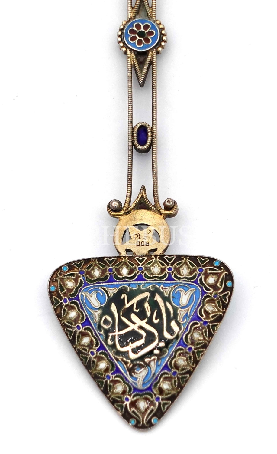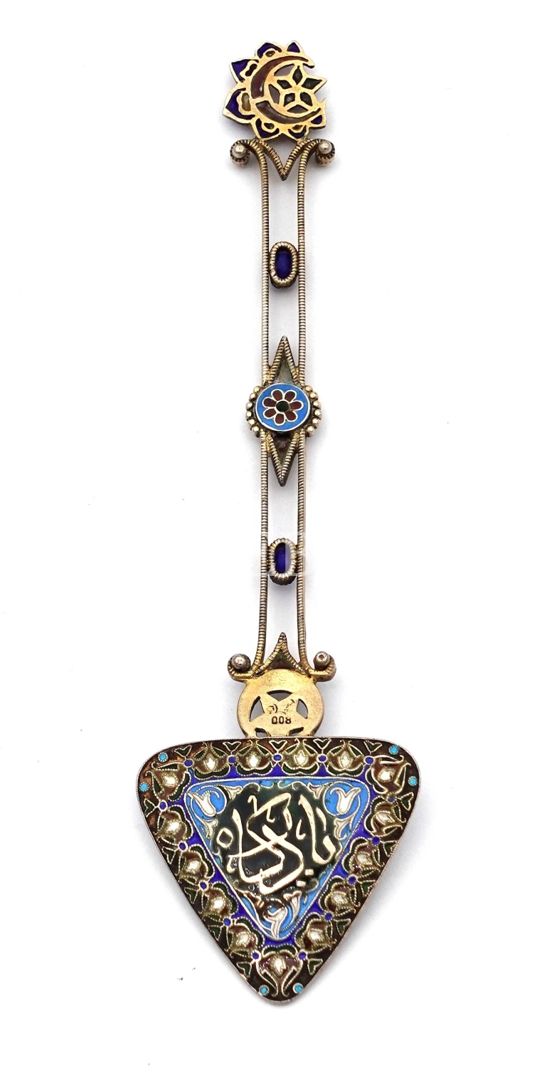 Osmanlı döneminden "Ya Dergâh?" yazılı ve Ayasofya Camii görselli gümüş mineli kaşık, 24 gr, 4x14 cm