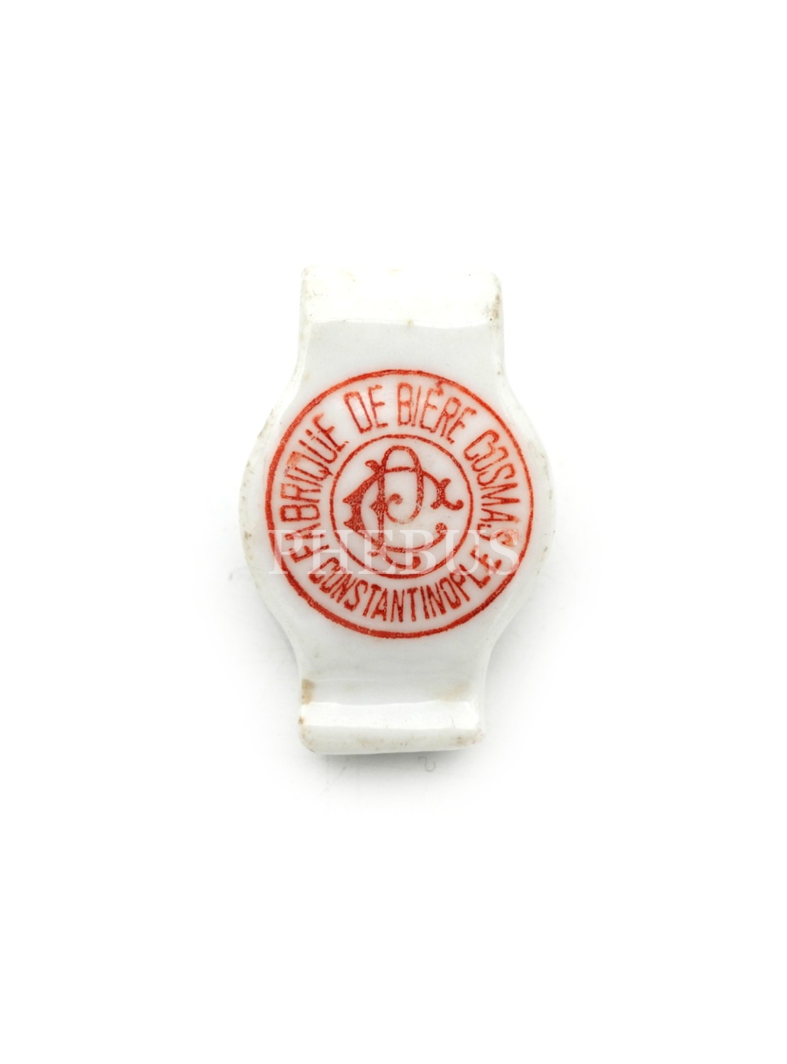 Cosmas bira fabrikasına ait "Constantinople" yazılı porselen bira kapağı, 2.5x3x4 cm
