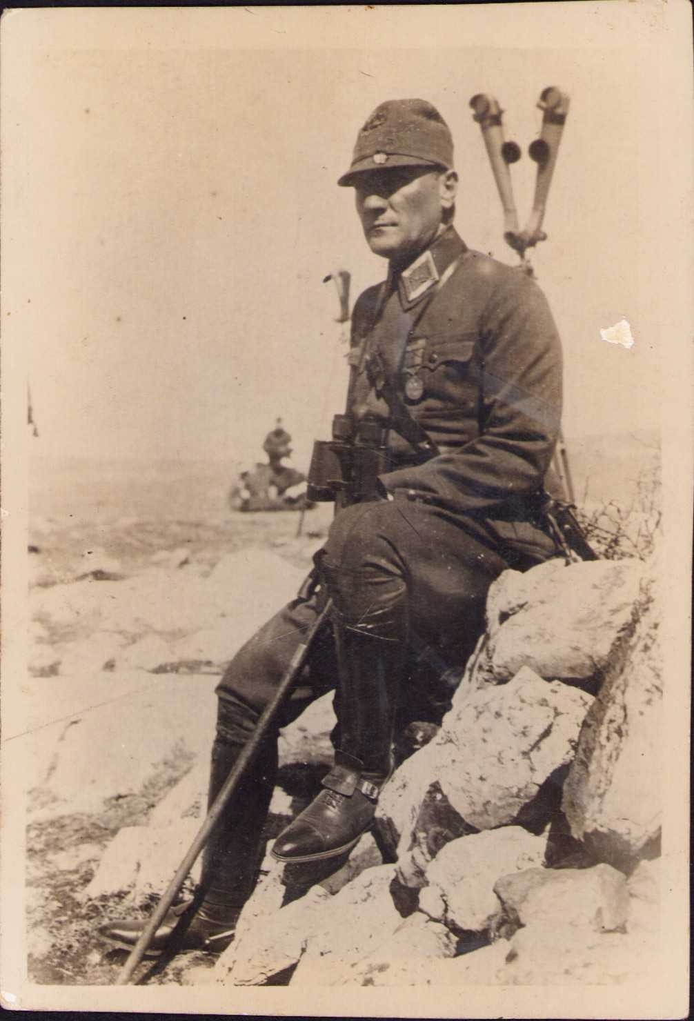 Atatürk cephede, büyük imtiyaz madalyalı ve dürbünüyle beraber, 9x12cm