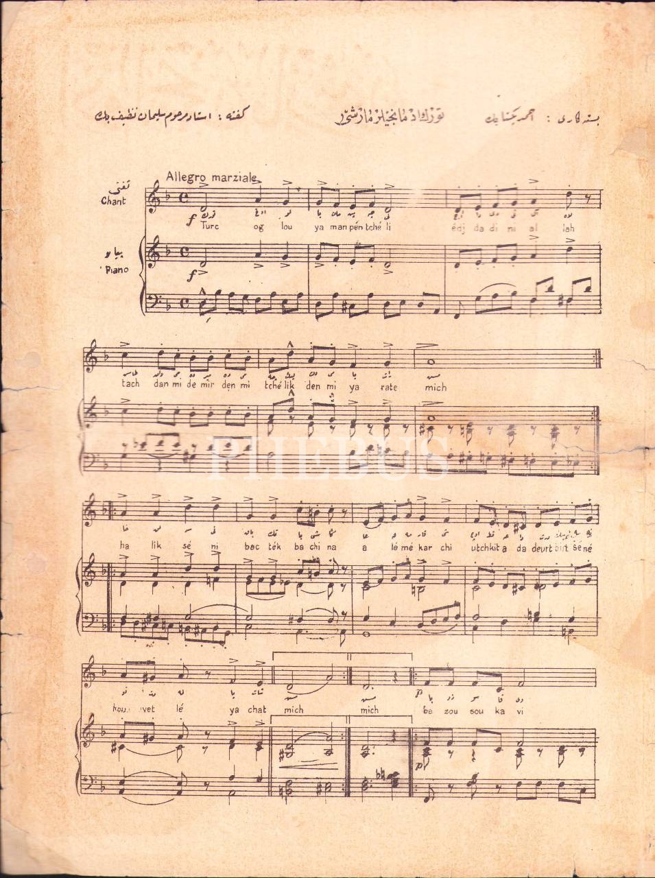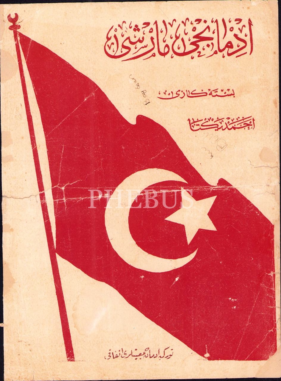 Güftesi Süleyman Nazif ve bestesi Ahmed Yekta Bey'e ait Türk İdmancılar Marşı notası, Cemal Azmi Matbaası, 25x34 cm