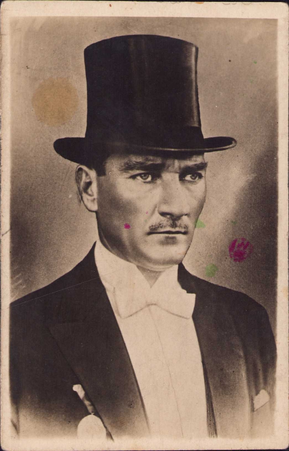 İstiklal madalyalı, melon şapkalı, bıyıklı Gazi Mustafa Kemal Atatürk, 9x14cm