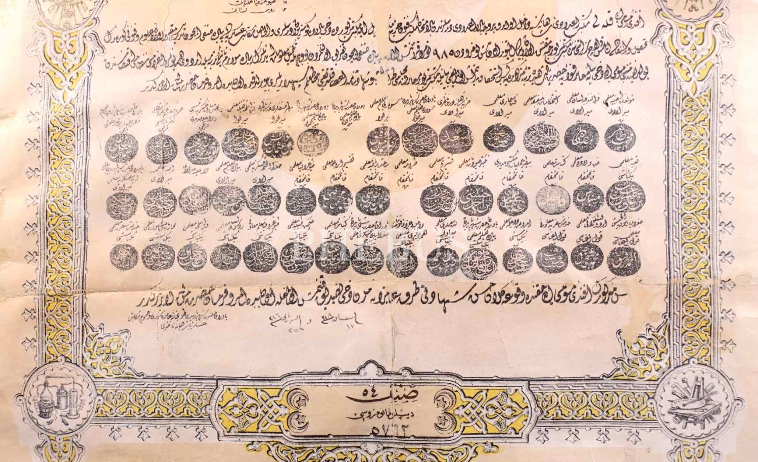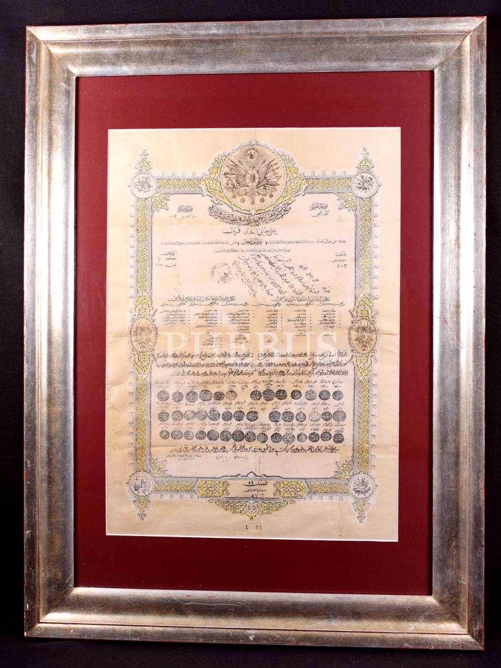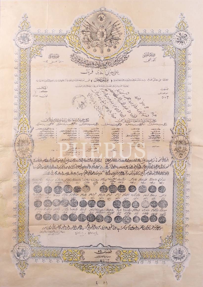 Kuleli Mekteb-i İdadisi ile Mekteb-i Fünun-ı Harbiye'den Ali Recai Efendi'ye el-Gazi Abdülhamid Han döneminde verilen 1318 tarihli subay diploması, çerçeve: 61x83 cm