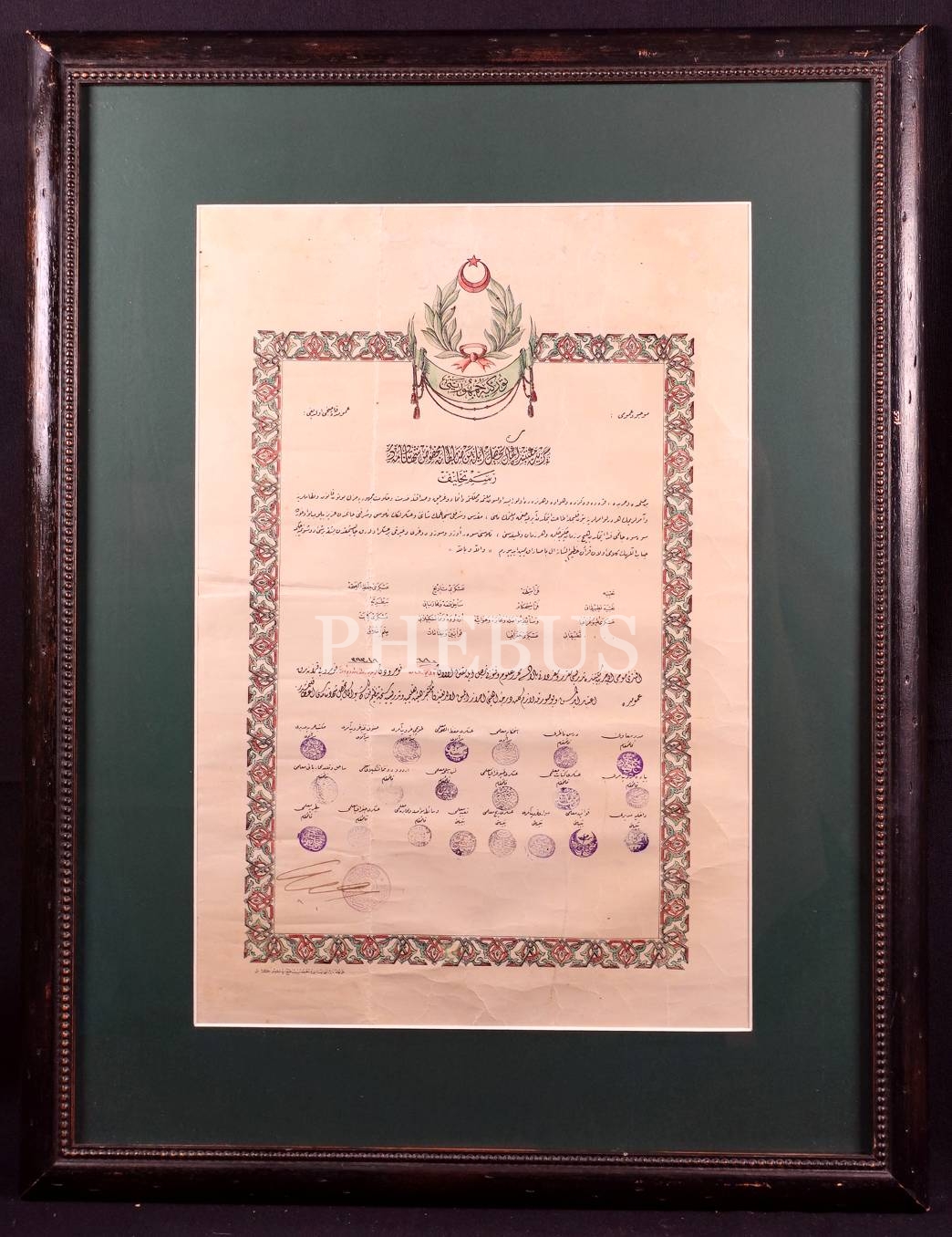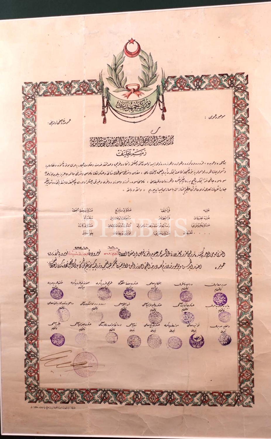 Harbiye Mektebi'nden ikmal-i tahsil şehadetnamesi [diploma], Harita Dairesi İstanbul Matbaası, 1340, çerçeve: 54x69 cm
