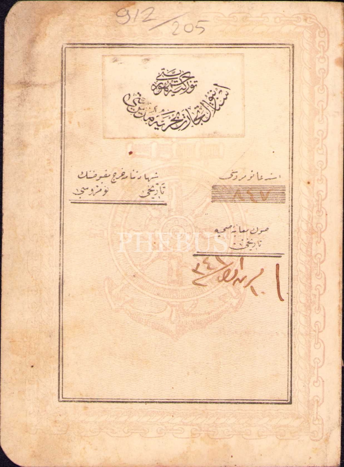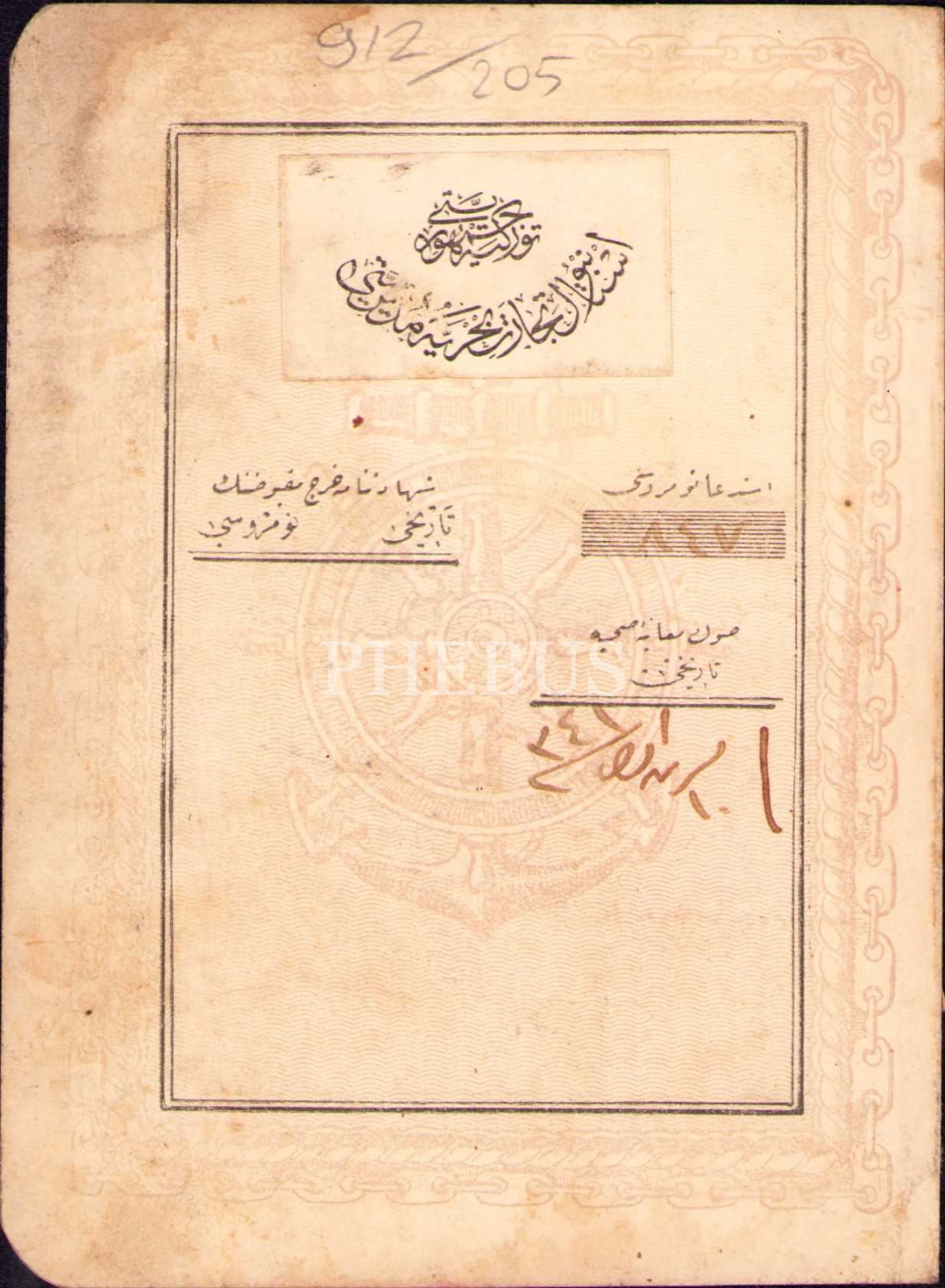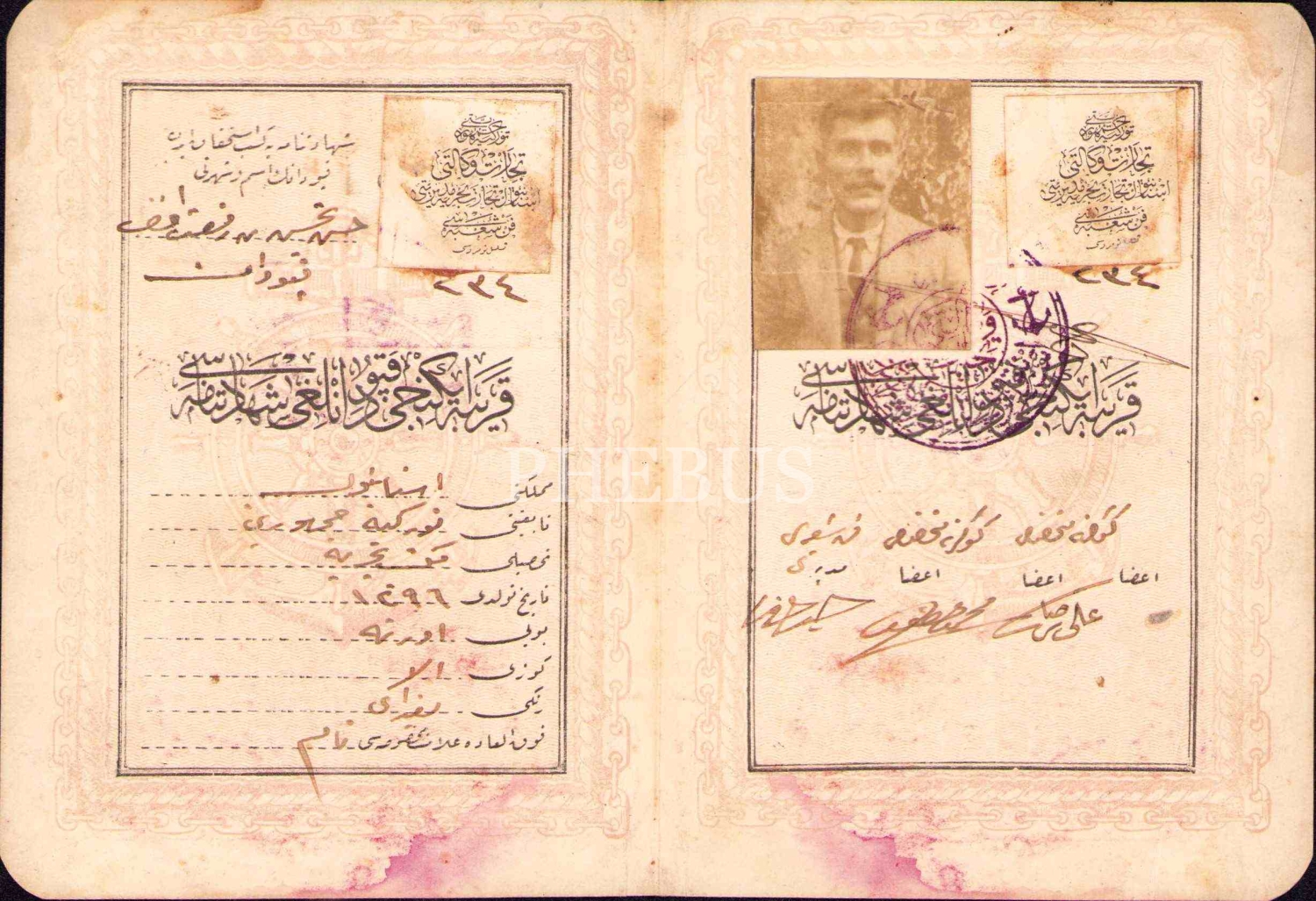 İstanbul Ticaret-i Bahriye Müdürlüğü'nden fotoğraflı kapudanlık [kaptanlık] ehliyeti, 1341 tarihli, 10x14 cm, kenardan kırık haliyle