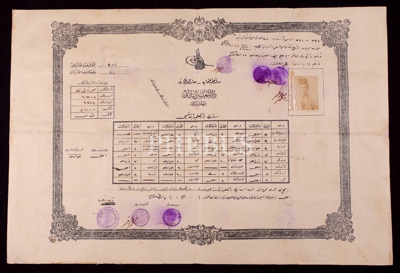 İstanbul Darülmuallimin-i İbtidai'den Mehmed Faik Efendi'ye ait fotoğraflı şehadetname, 1337 tarihli, 35x51 cm