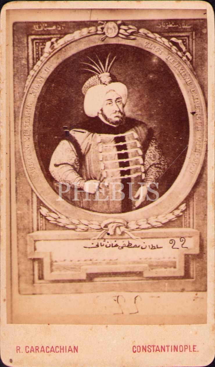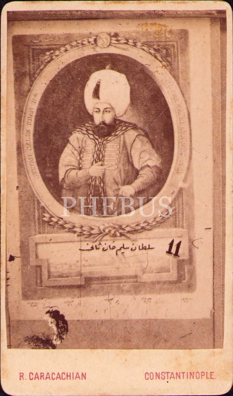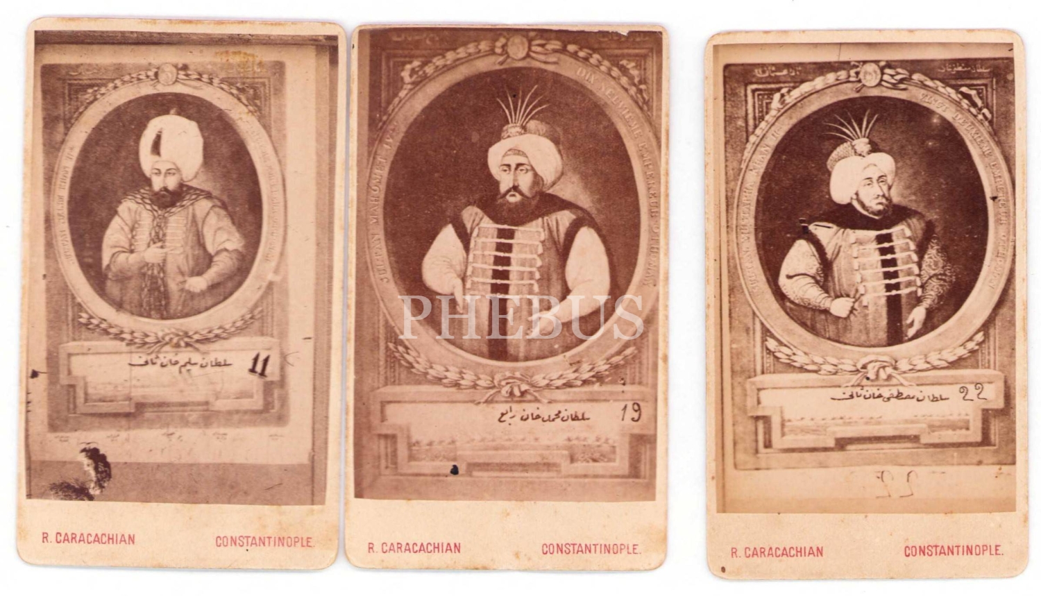 R. Caracahian Fotoğrafhanesi'nden Sultan 4. Murad, Sultan 2. Mustafa, Sultan 2. Selim portreleri, Constantinople, her biri 6x11 cm