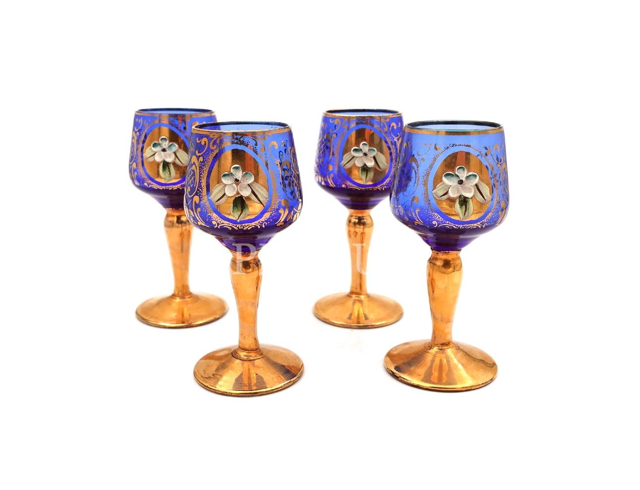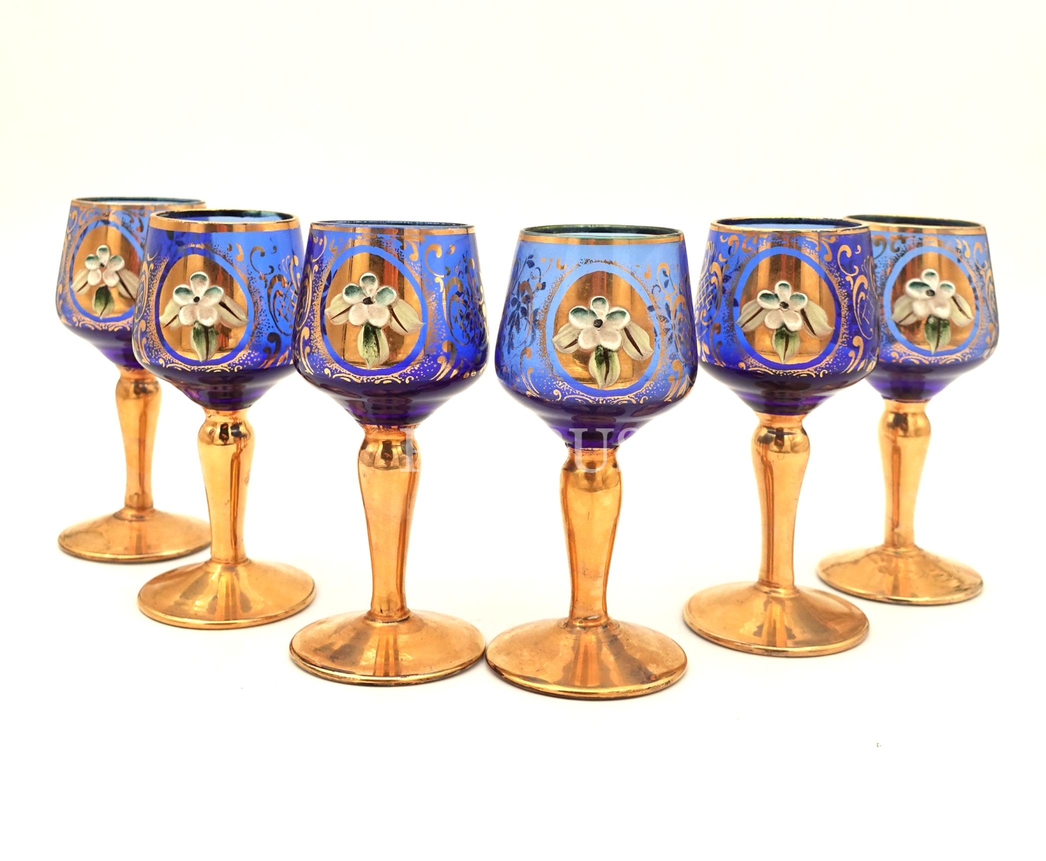 Yaldız işçilikli altı adet likör kadehi, 6x4 cm
