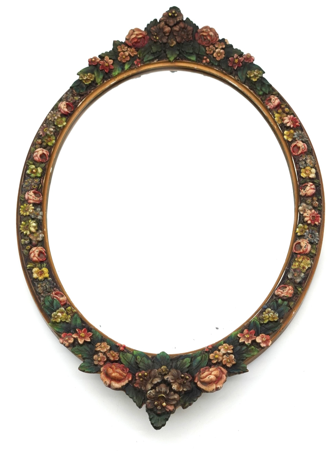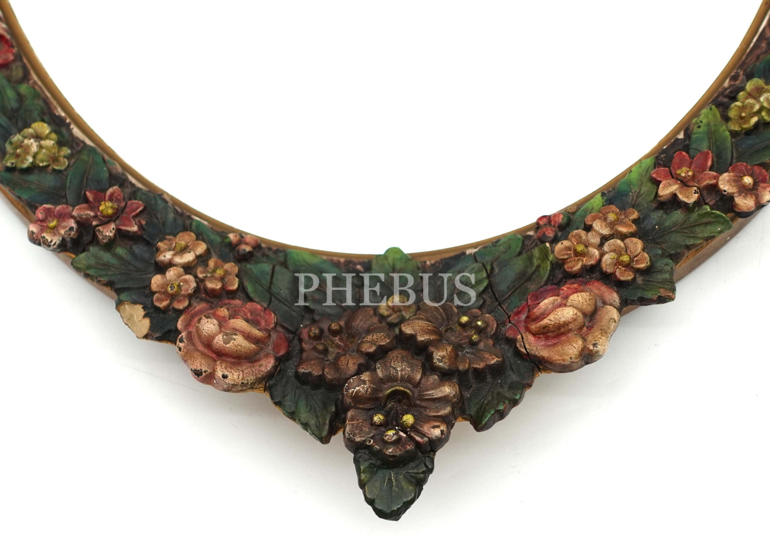 Özel kesim ve el boyama çiçek desenleriyle orta boy ahşap ayna, 30x47 cm