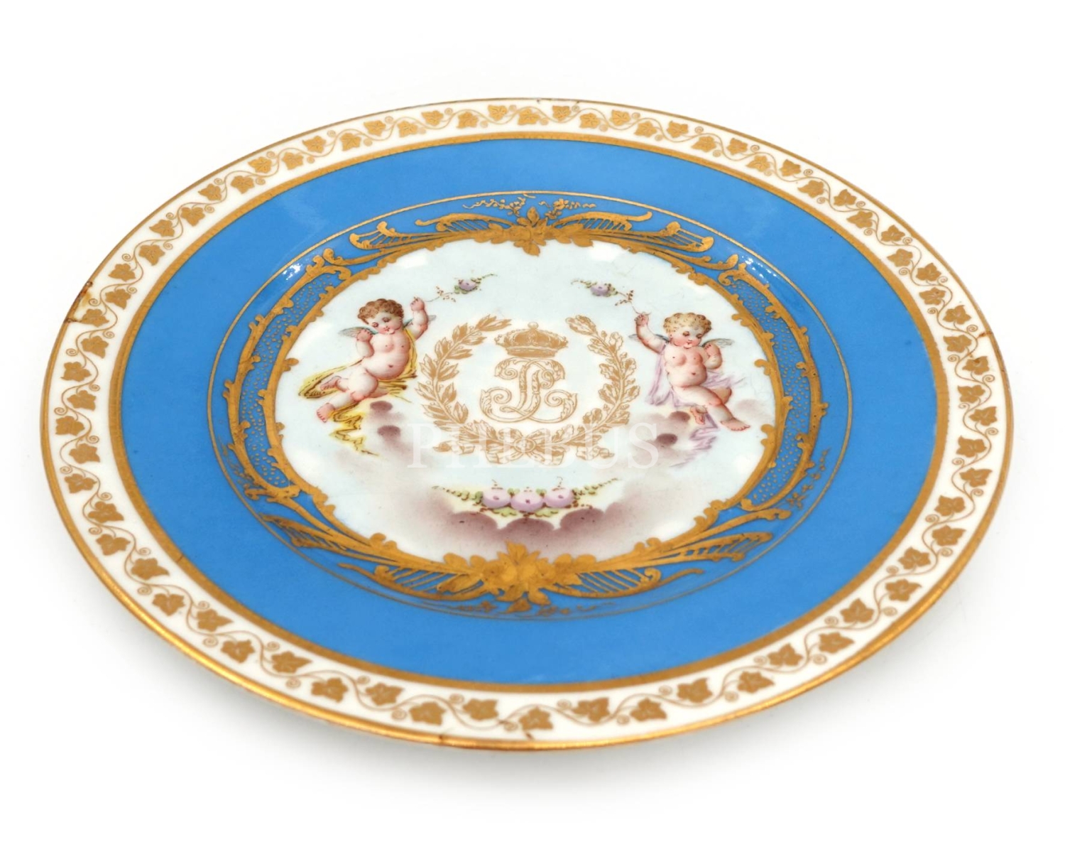 Fransa Kralı Louise Phillipe için üretilip kendi inisiyalini taşıyan, ikametgâhı Tuilier Şatosu damgalı 1846 üretimi Sevres Porselen tabak. Fransız İmparatorluk mavisi çerçeve içinde, kraliyet tacı altında L&P inisiyalli, çift tarafı melekler ile figürlenmiş tamamıyla el işçiliği tabağın, doğrudan Fransa Kralı için üretilmiş olması ve bugüne kadar sağlam olarak kalabilmesi nadirliğini arttırmaktadır.