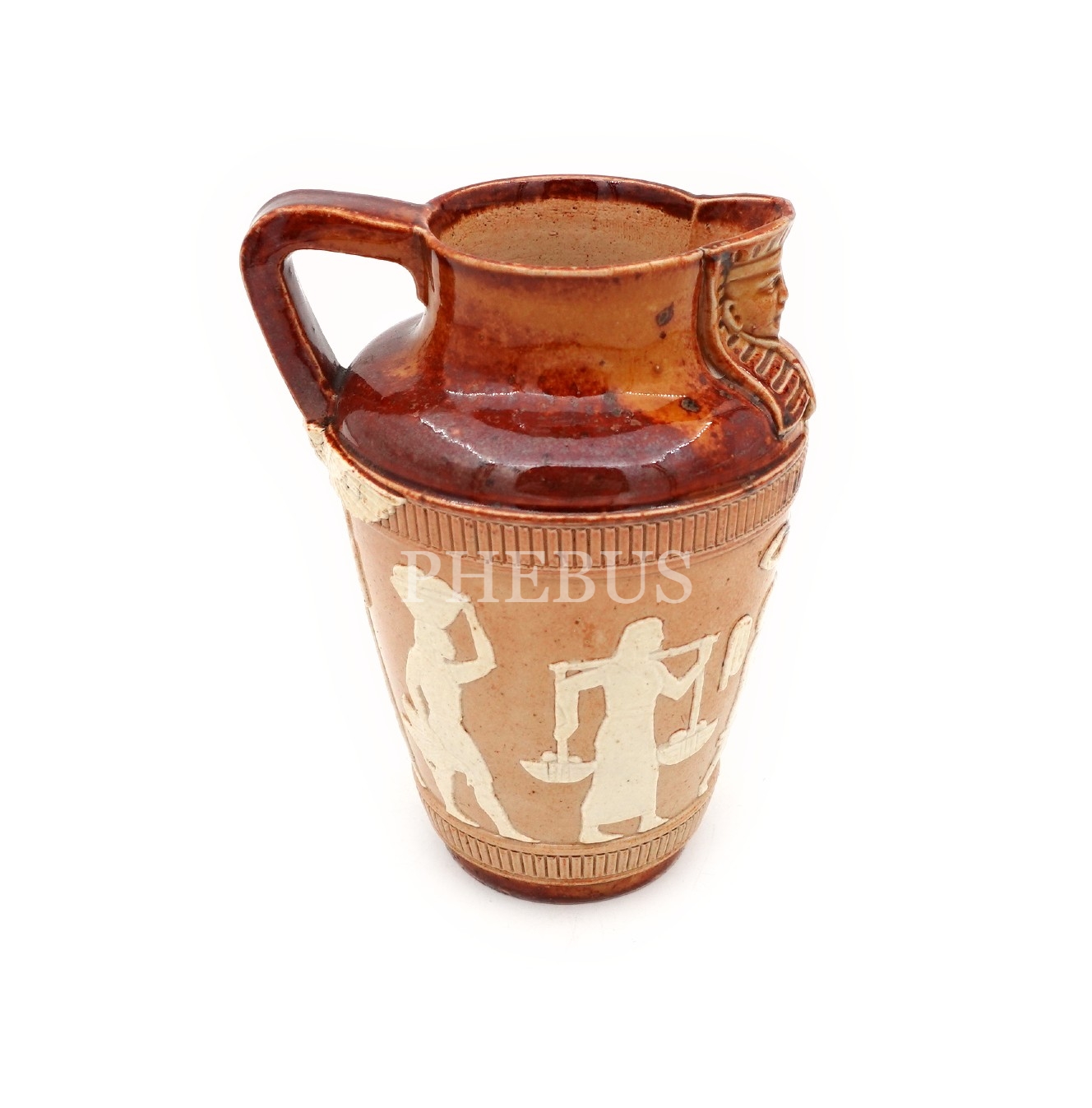 Royal Doulton Antik Mısır desenli sütlük, Annie Neal imzalı, 1889 yılı üretimi, 13x9,5 cm
