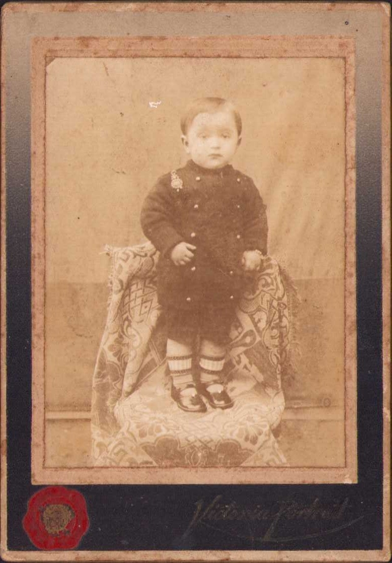 Osmanlı çocuk kabin fotoğrafı, arkası ithaflı ve imzalı, 10x14cm