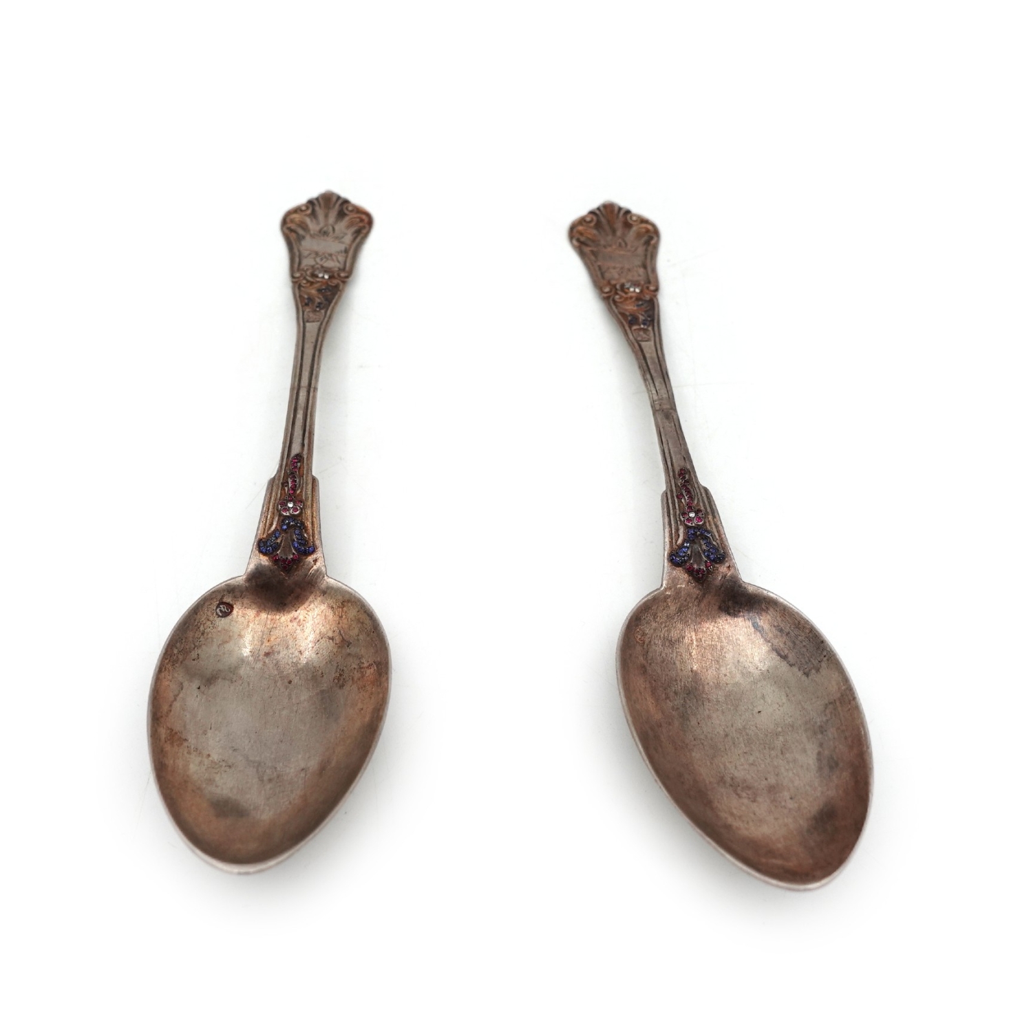 Osmanlı dönemine ait safir-yakut-pırlanta montürlü murassa çift kaşık