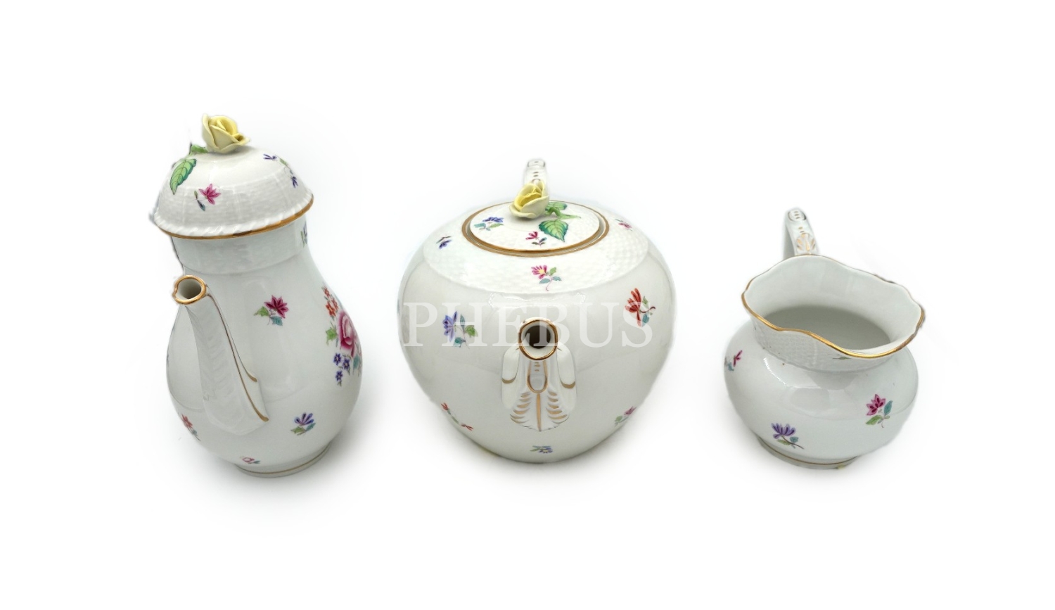 Herend Nanking Bouquet 1950 üretimi porselen çaydanlıklar ve sütlük