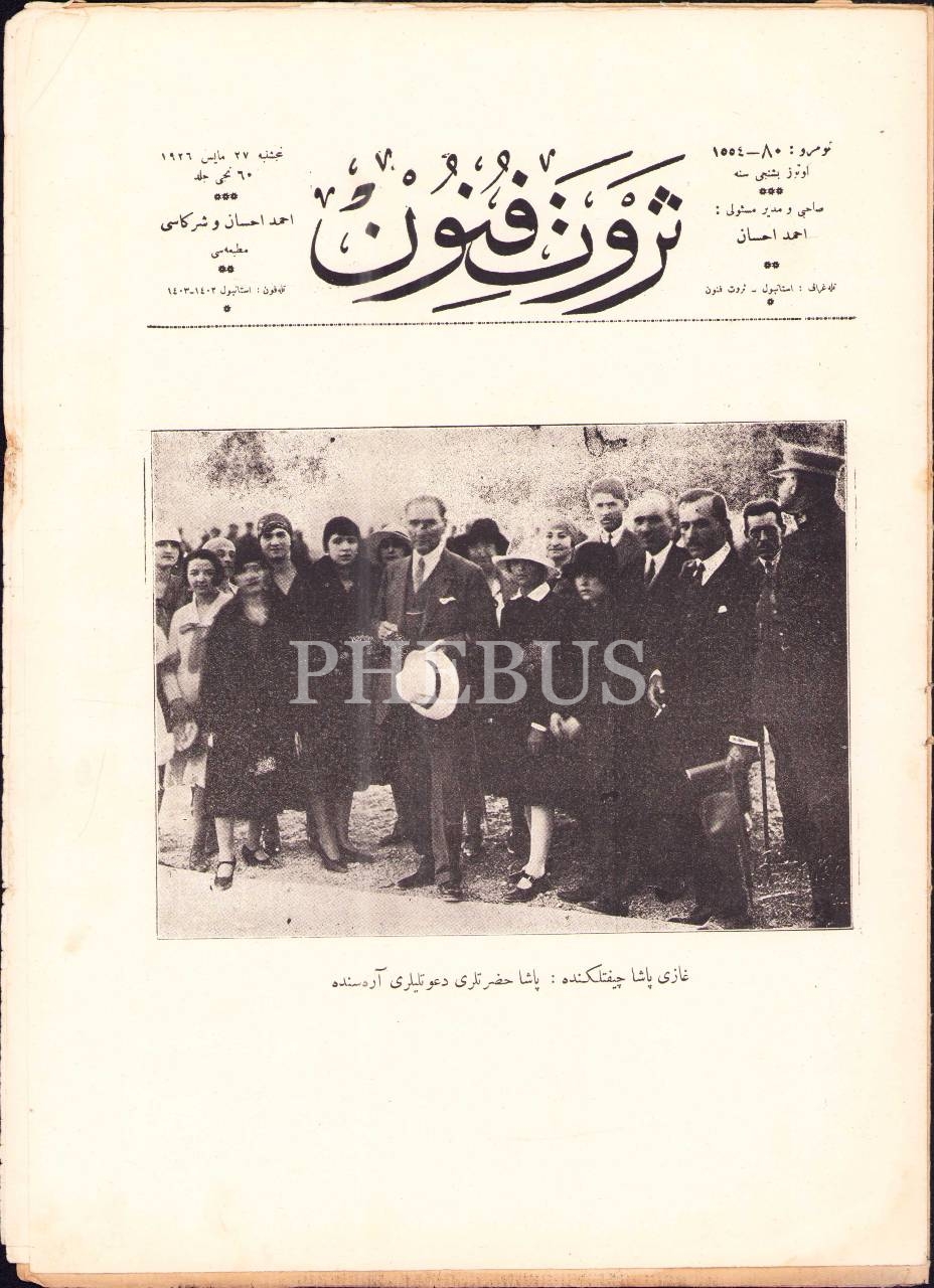 Servet-i Fünun dergisinin "Gazi Paşa Çiftliğinde: Paşa Hazretleri Davetlilerin Arasında" başlıklı kapak görseliyle 27 Mayıs 1926 tarihli sayısı, 24x34 cm