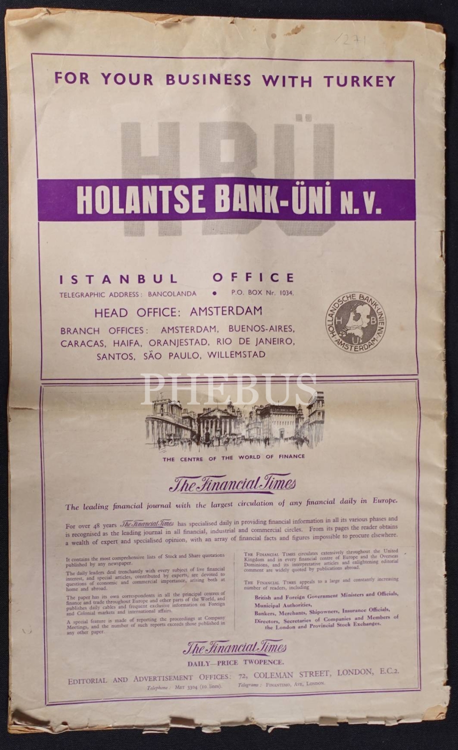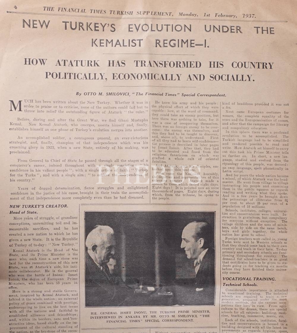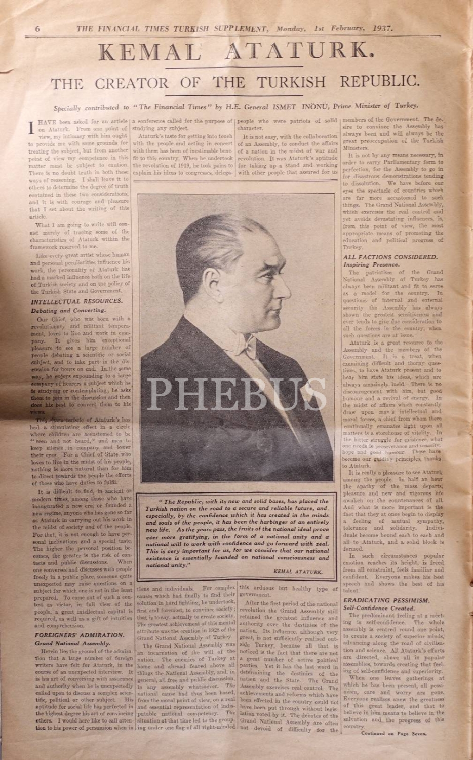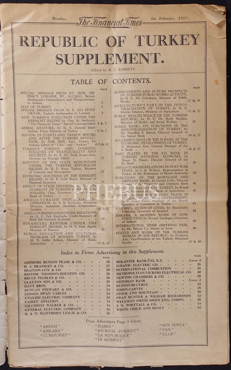 İngilizce The Financial Times dergisinin "Republic of Turkey [Türkiye Cumhuriyeti]" adlı eki, 1 Şubat 1937, 29x47 cm