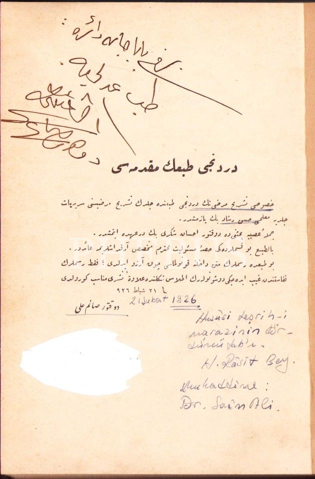 HÛSÛSÎ TEŞRÎH-İ MARAZÎ [Patoloji], Dr. Saim Ali, künye sayfası eksik, ithaflı ve imzalı, 858 s., 17x24 cm