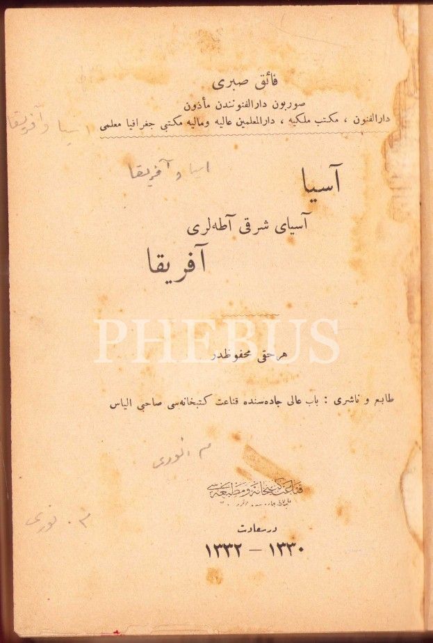 ASYA-ASYA-YI ŞARKÎ ADALARI-AFRİKA, Faik Sabri, Kanaat Matbaası, Dersaadet [İstanbul] 1332, 515 s., 14x20 cm
