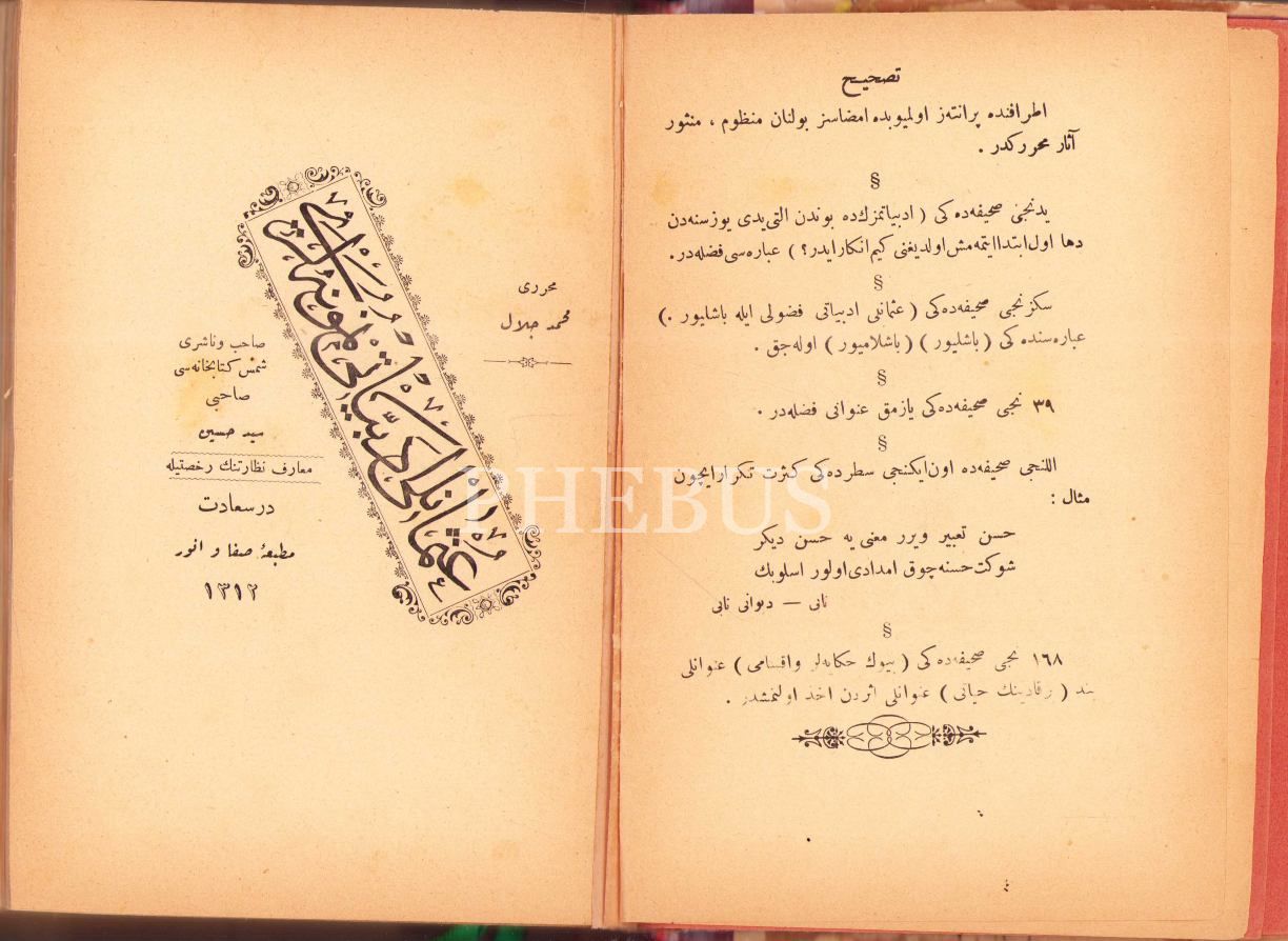 OSMANLI EDEBİYATI NUMÛNELERİ, Mehmed Celal, Safa ve Enver Matbaası, Dersaadet [İstanbul] 1312, 608 s., 14x20 cm