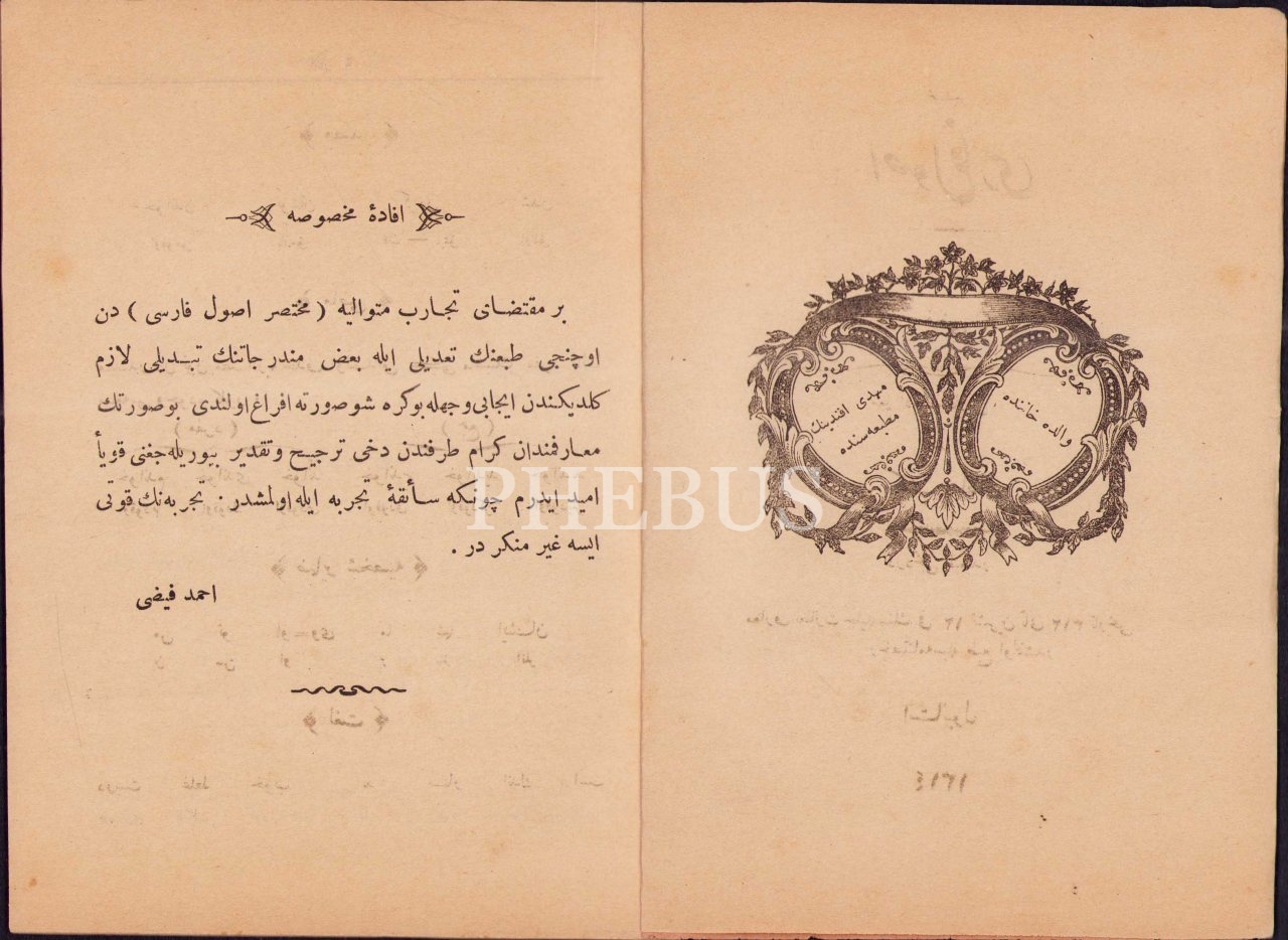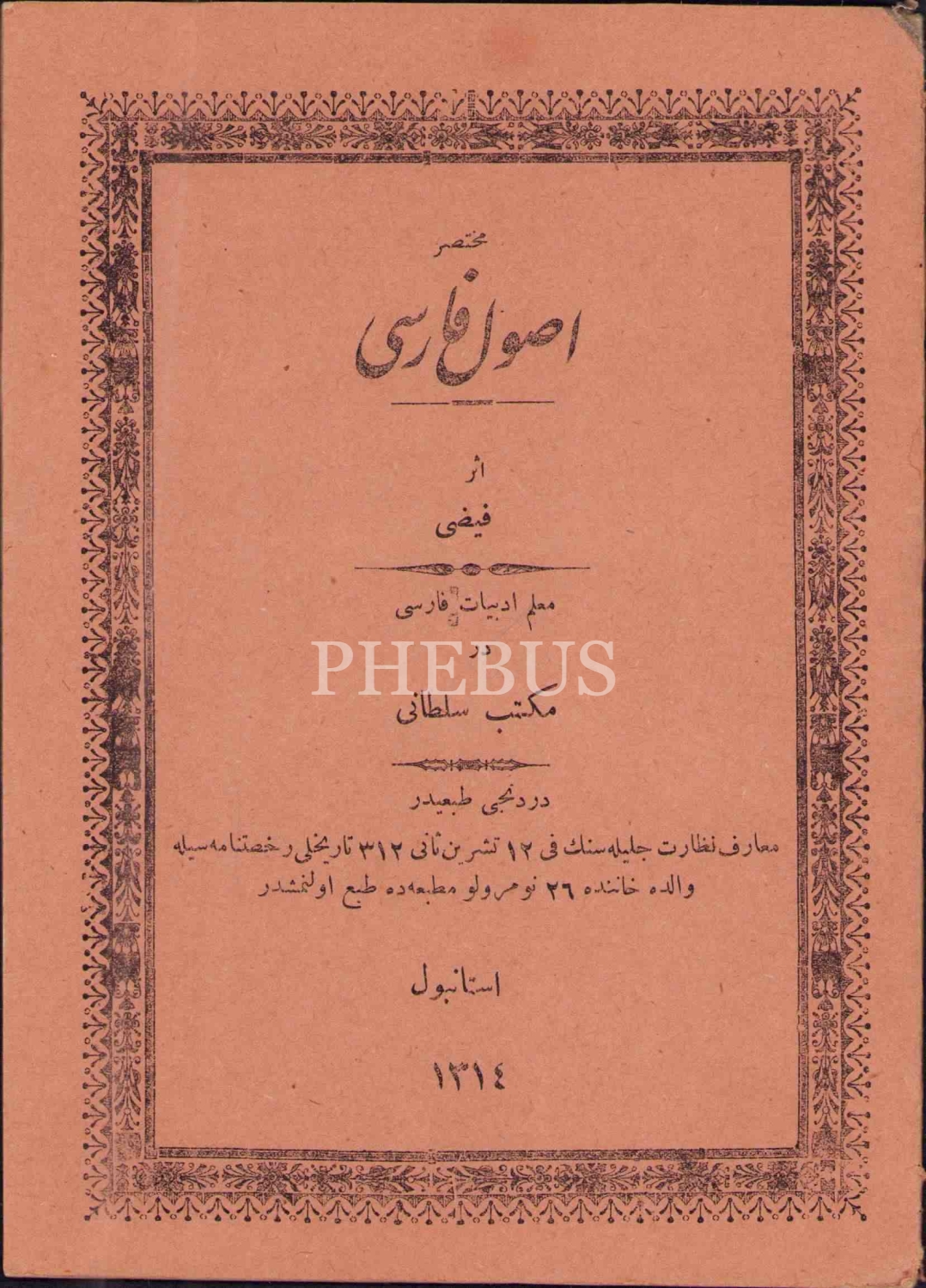 MUHTASAR USÛL-İ FÂRSÎ, Feyzi, İstanbul 1314, 46 s., 14x19 cm