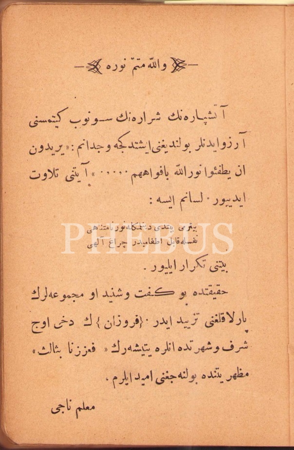 GÜLBÜN, Andelîb [Faik Esad], Asr Matbaası, 1318, 27 s.; ŞÜKÛFE-İ İSTİGRÂK [Manzum], Mustafa Reşid, şairden ithaflı ve imzalı, Alem Matbaası, İstanbul 1310, 61 s.; SEVÂTI', Şeyh Vasfi, Alem Matbaası, İstanbul 1311, 102 s., 11x16 cm, cildi hafif yıpranmış haliyle