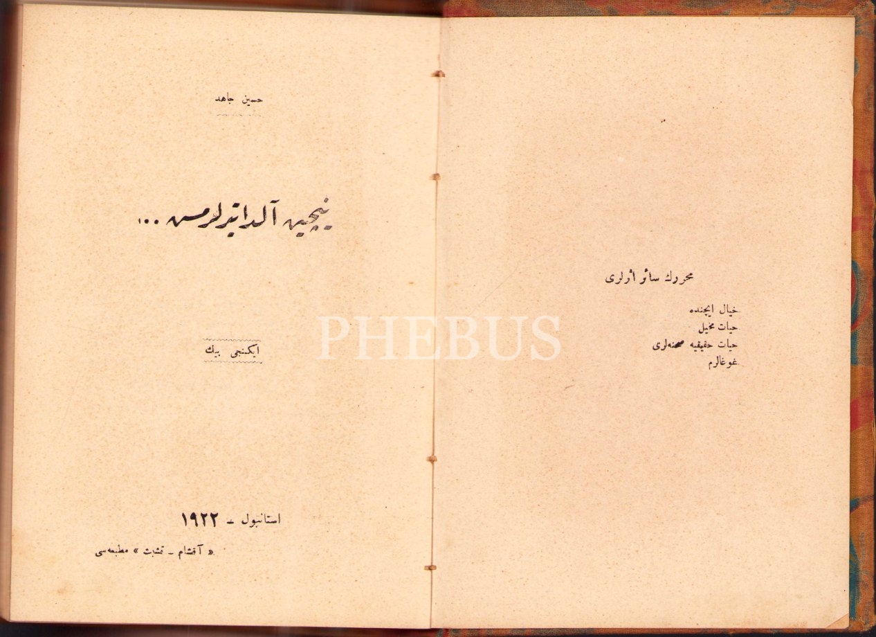 NİÇİN ALDATIRLARMIŞ, Hüseyin Cahid [Yalçın], Akşam-Teşebbüs Matbaası, İstanbul 1922, 296 s., 13x19 cm