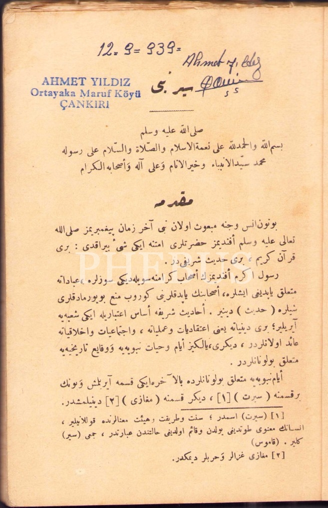 SİYER-İ NEBÎ, Mehmed Ziya, Orhaniye Matbaası, İstanbul 1926-7, 191 s., 12x19 cm
