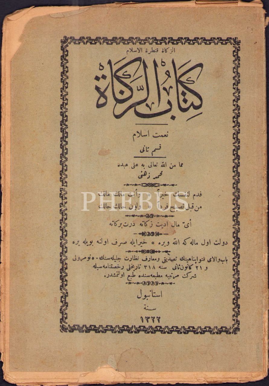 Ni'met-i İslâm 2. Kısım: KİTÂBÜ'Z-ZEKÂT, Mehmed Zihni, Şirket-i Mürettibiye Matbaası, İstanbul 1322, 46 s., 14x20 cm, sayfa kenarları hafif yıpranmış haliyle