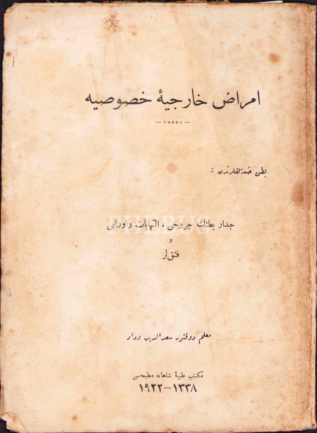 EMRÂZ-I HÂRİCİYYE-İ HUSÛSİYYE, Dr. Sadeddin Vedad, Mekteb-i Tıbbiye-i Şahane Matbaası, 1922, 64 s., 15x21 cm, kapak sayfası hafif yıpranmış haliyle