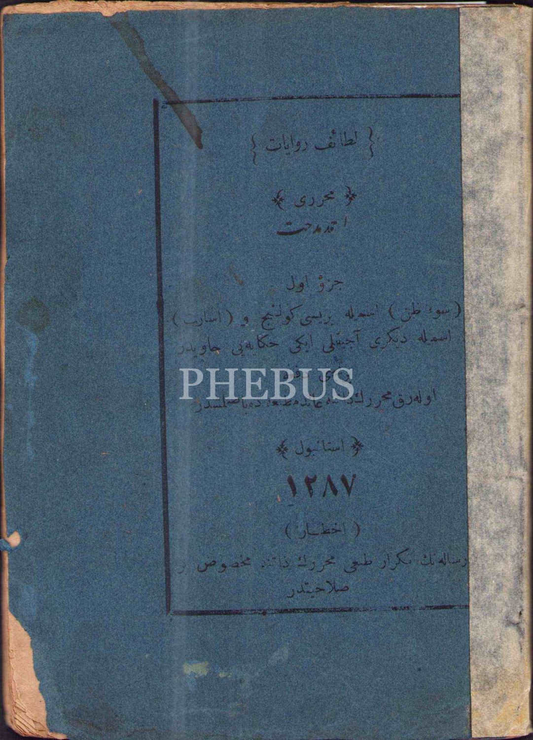 LETÂİF-İ RİVÂYÂT (1. Kısım), Ahmed Midhat, Ahmed Midhat Matbaası, İstanbul 1287, 104 s., 13x18 cm