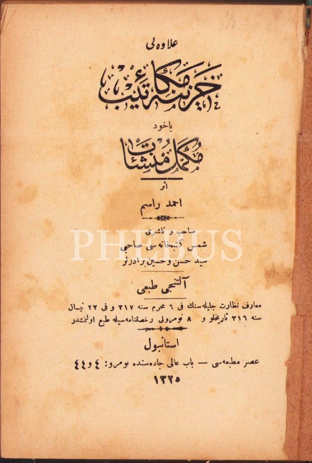 İLÂVELİ HAZÎNE-İ MEKÂTÎB YÂHÛD MÜKEMMEL MÜNŞEÂT, Ahmed Rasim, Asr Matbaası, İstanbul 1325, 416 s., 14x20 cm