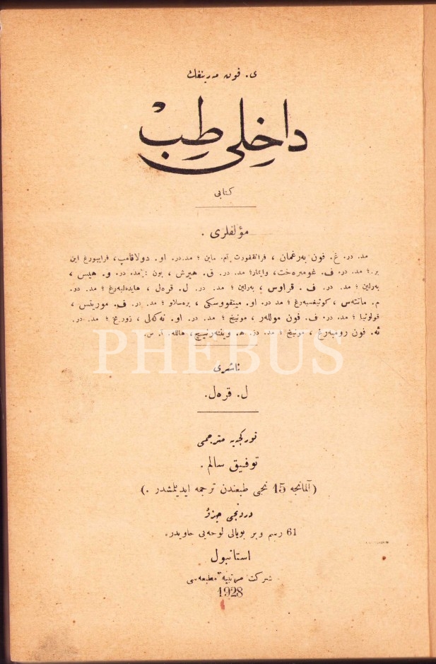 DÂHİLÎ TIB KİTÂBI (3-4. Kısım), Joseph von Mering, çev. Tevfik Salim, Şirket-i Mürettibiye Matbaası, İstanbul 1927-8, 451+594 s., 16x23 cm