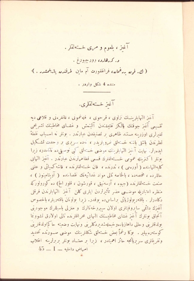 İçeriği: "Hazım Cihâzı Hastalıkları, İdrar A'zâsı Hastalıkları, Kan Hastalıkları, İfrâz-ı Dâhilî Guddelerinin Hastalıkları, İgtidâ Bozuklukları, Avitaminozlar ve Buna Yakın Hastalıklar, Bünya Galat-ı Tabîatları"