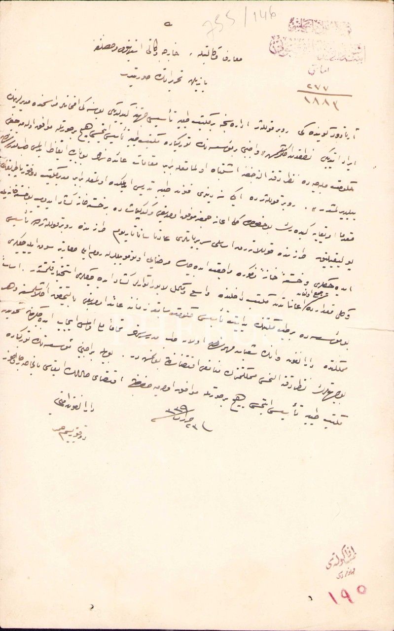 Tıp Profesörü Besim Ömer Akalın'ın ıslak imzasıyla Maarif Vekaleti ve Hariciye Vekaleti İstanbul Murahhaslığı'na yazılan 1339 tarihli Osmanlıca mektubun sureti, 17x27 cm, kenarları yırtık haliyle