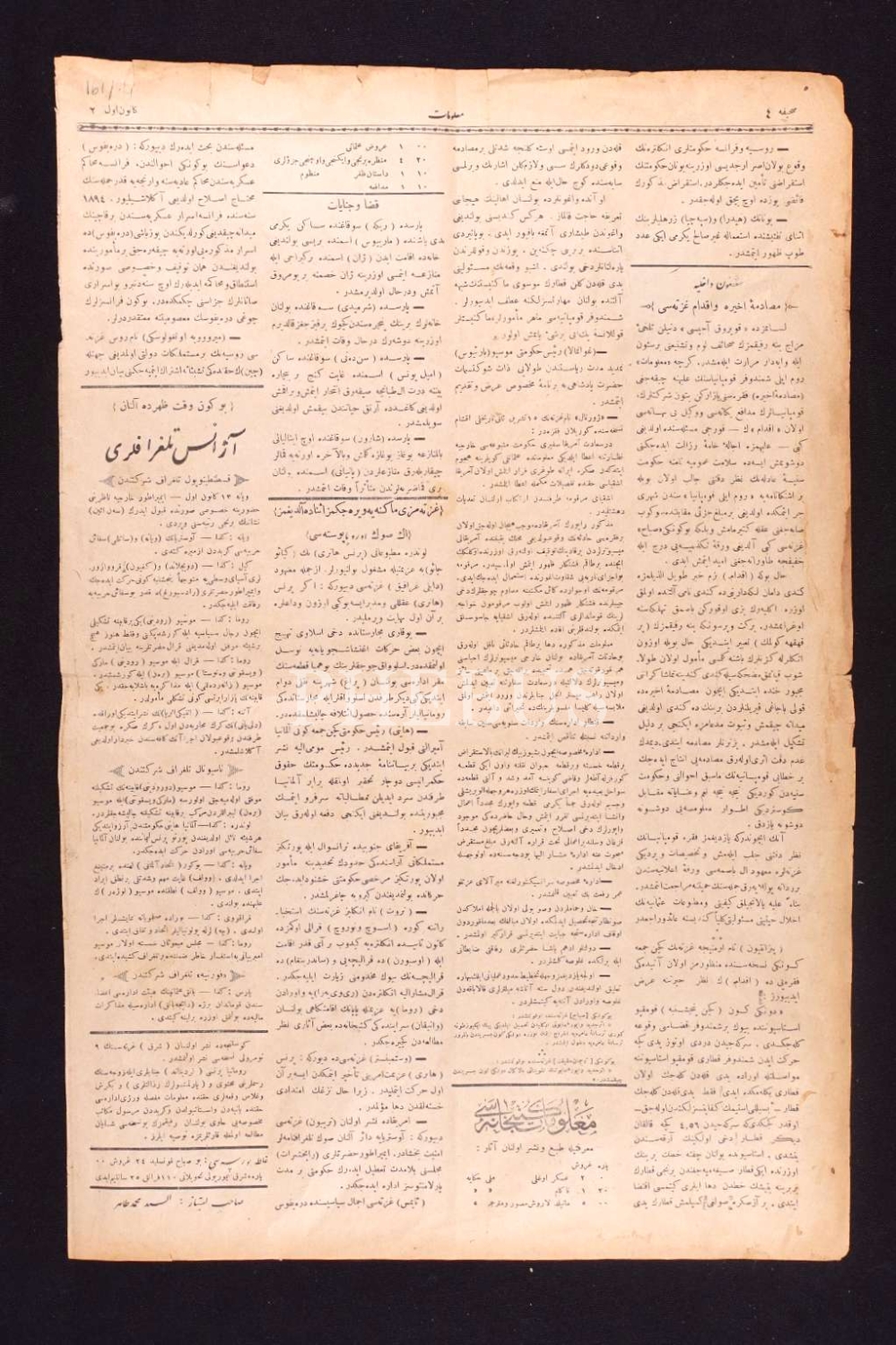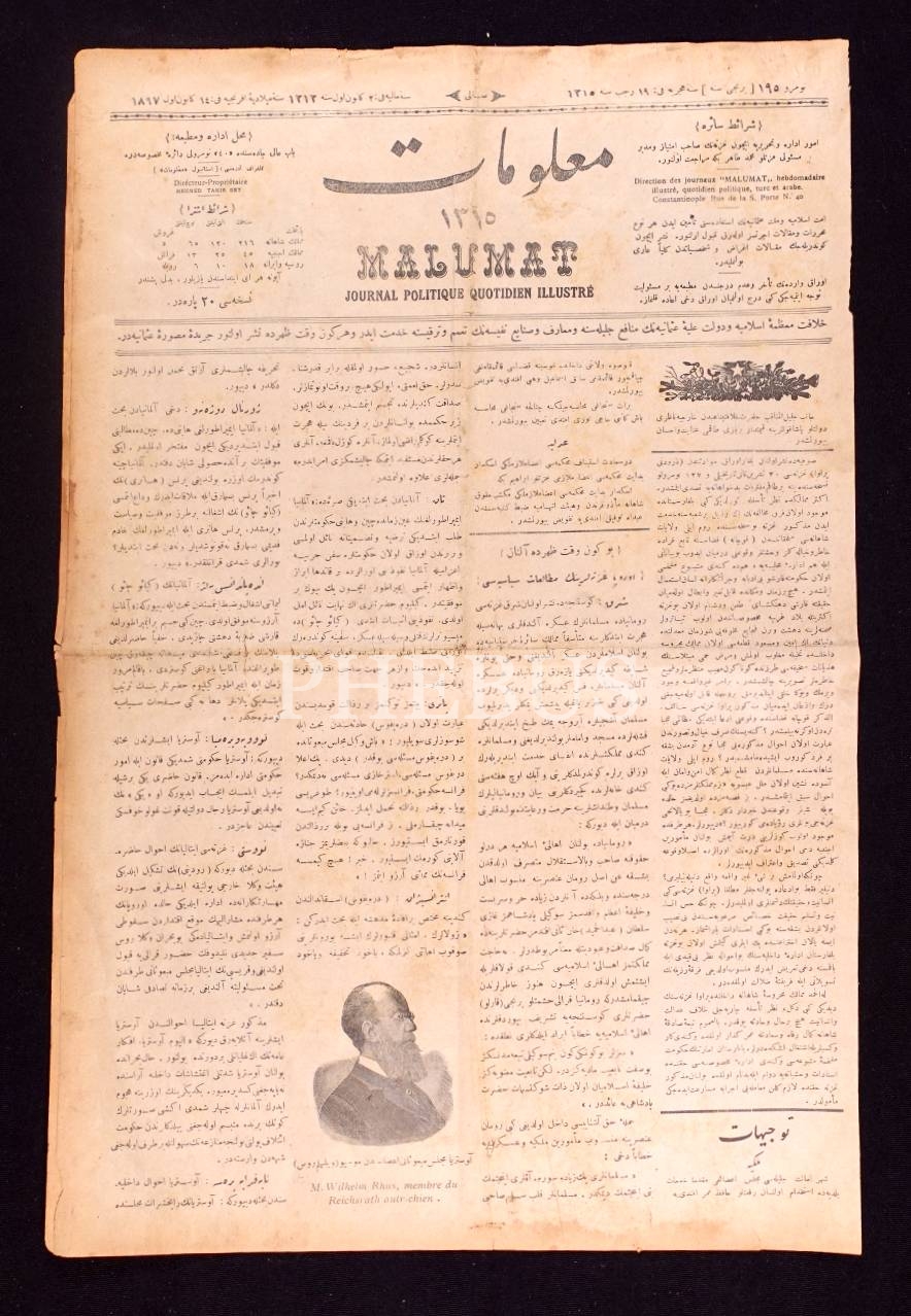 Osmanlıca Malumat gazetesinin 195. sayısı, 14 Kanunuevvel 1897, 32x48 cm